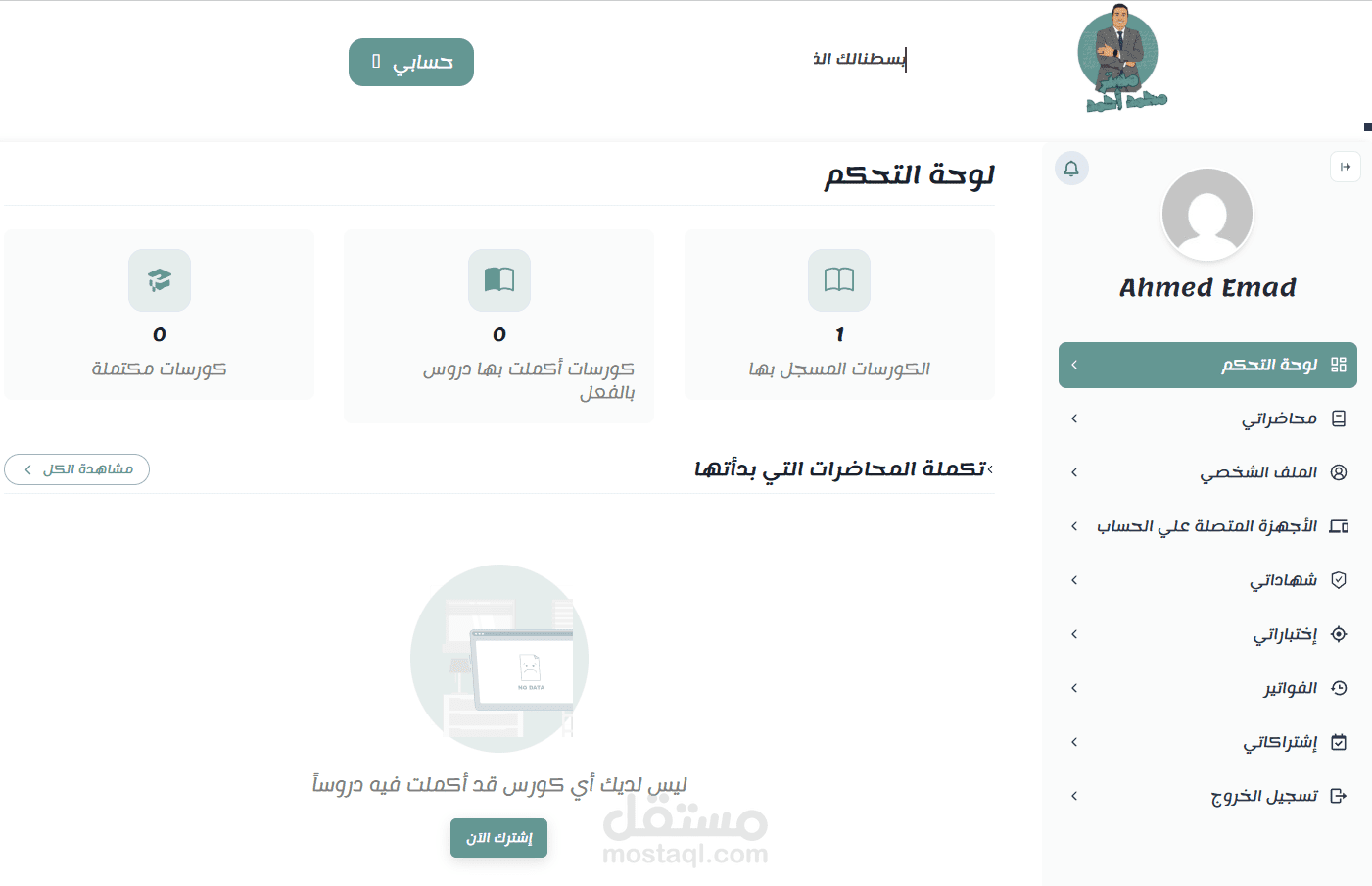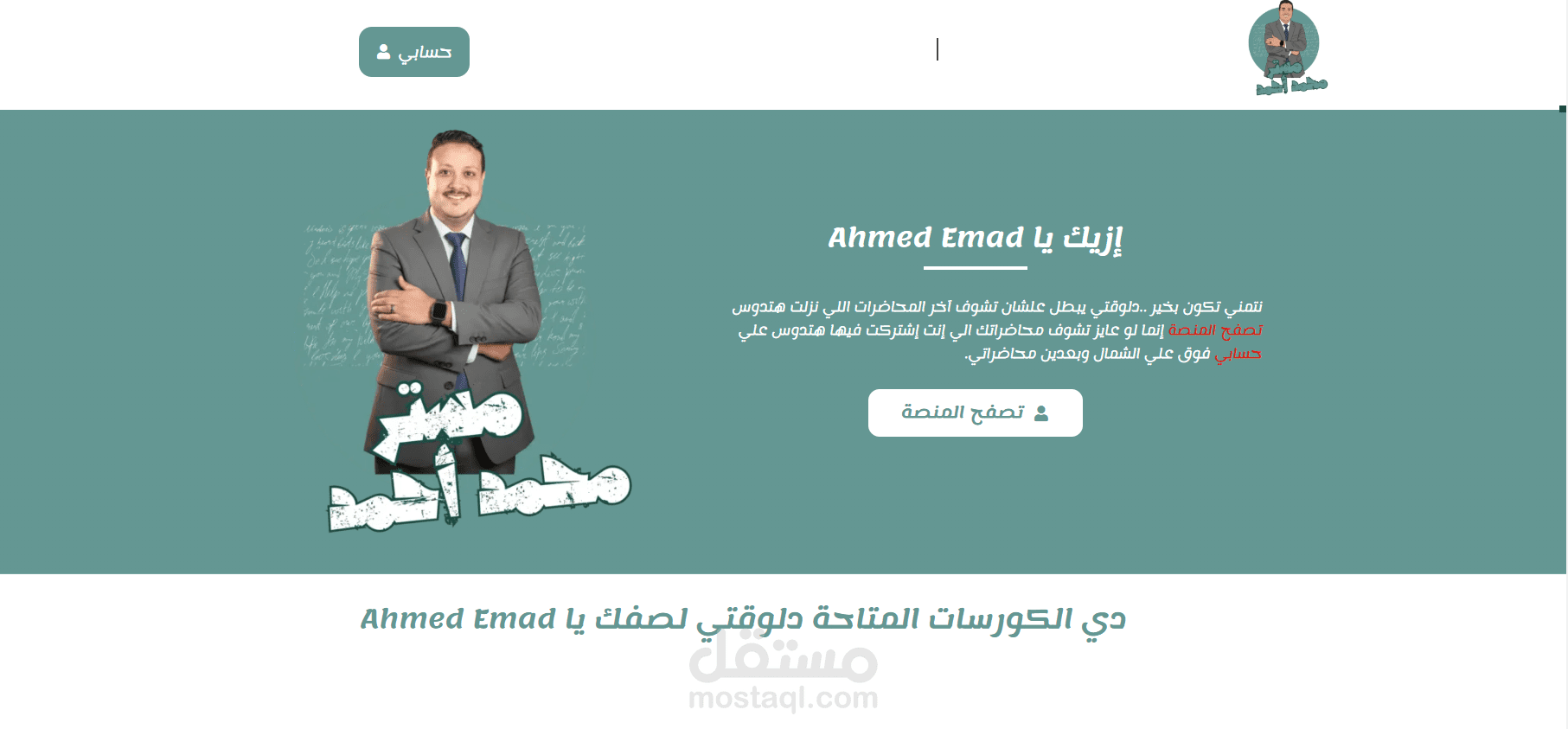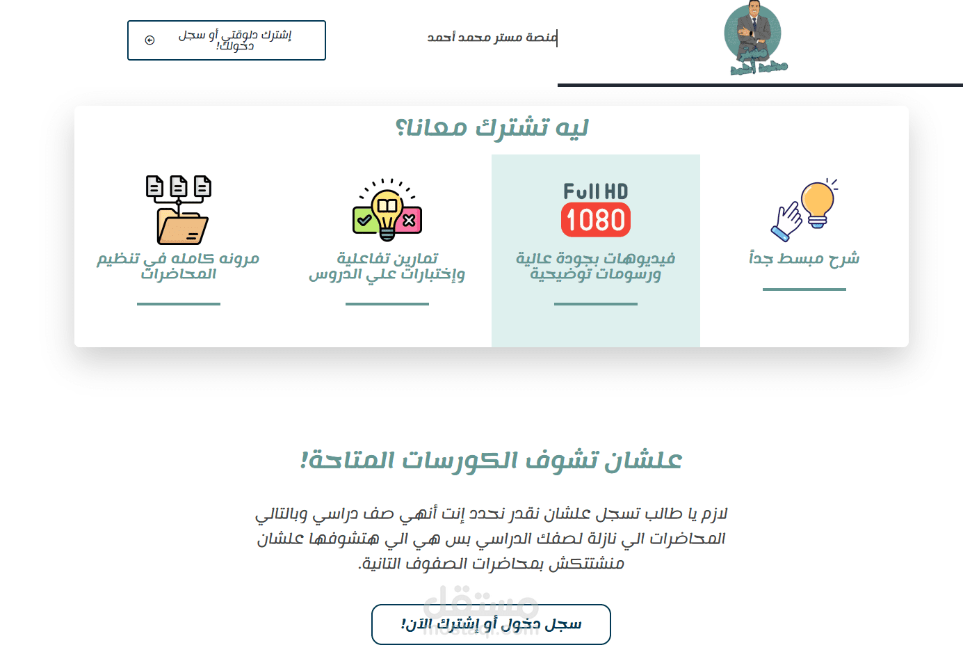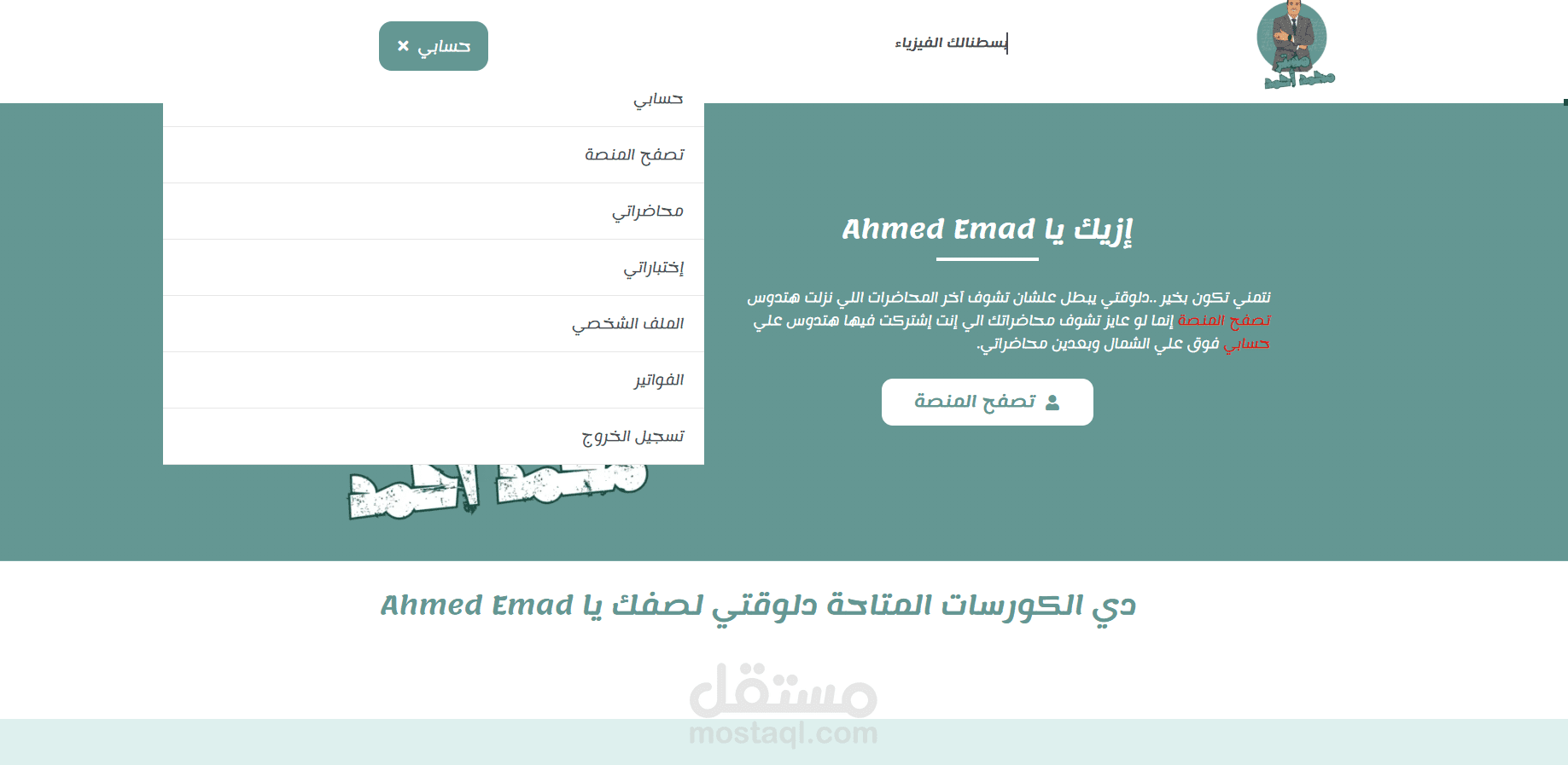 تم إنشاء منصة تعليمية متكاملة وتصميم الشعار لمدرس فيزياء لطلاب مراحل الثانوية العامة/متكاملة الأنظمة/لوحة تحكم سهلة للطالب والمدرس
