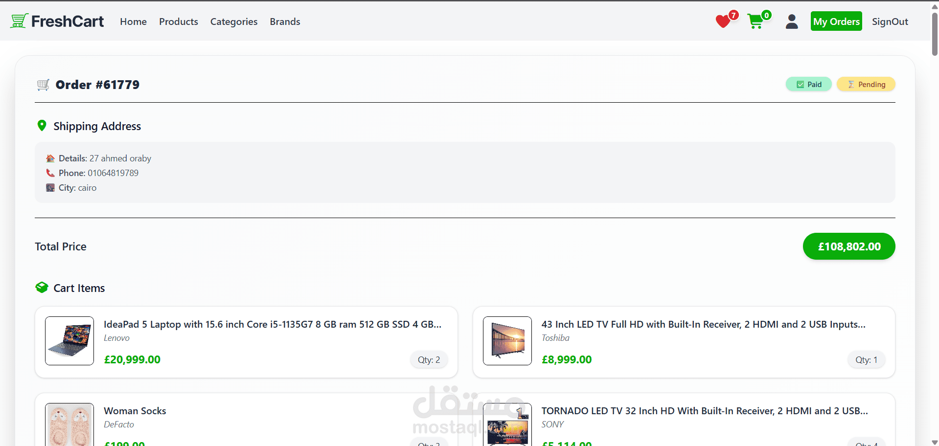 Built an e-commerce website using Angular 20, NGX packages, and Tailwind CSS with a responsive and user-friendly design. The system displays products, categories, and brands with a search feature for quick filtering. Integrated APIs for product and order management, implemented authentication for secure access, and added payment options including cash and Visa.