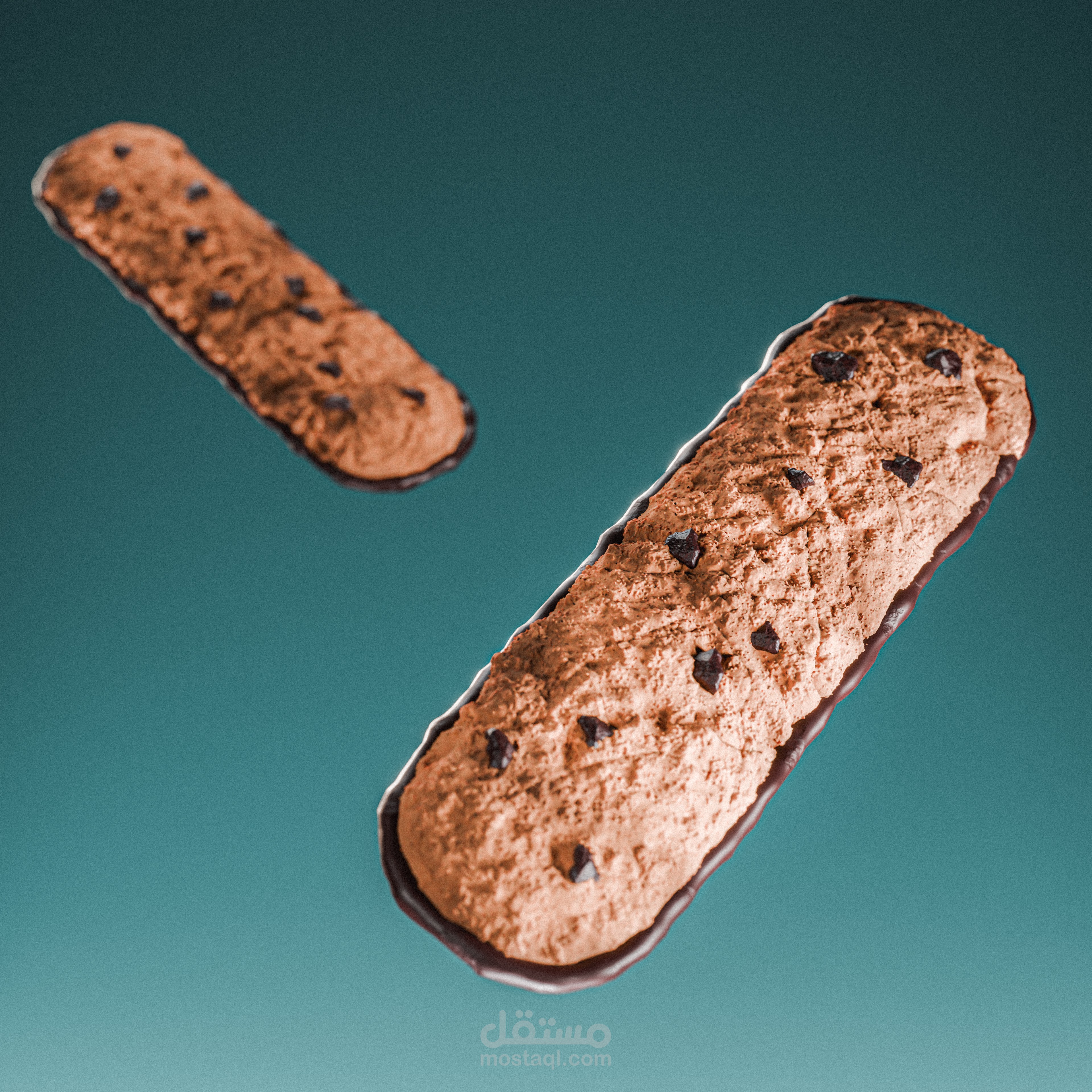 هذا العمل عبارة عن تصميم ثلاثي الأبعاد لقطع الشوكولا والبسكويت، تم إنجازه باستخدام برنامج Blender عبر تقنيات النحت (Sculpting) وإضافة الخامات (Texturing) ثم الإخراج (Rendering). بعد ذلك تم إجراء بعض التعديلات على الألوان والتباين باستخدام Photoshop لإبراز التفاصيل وجعل النتيجة أكثر واقعية وجاذبية.