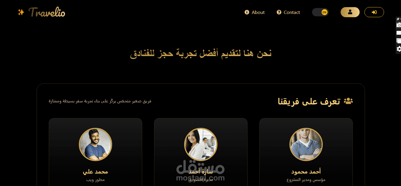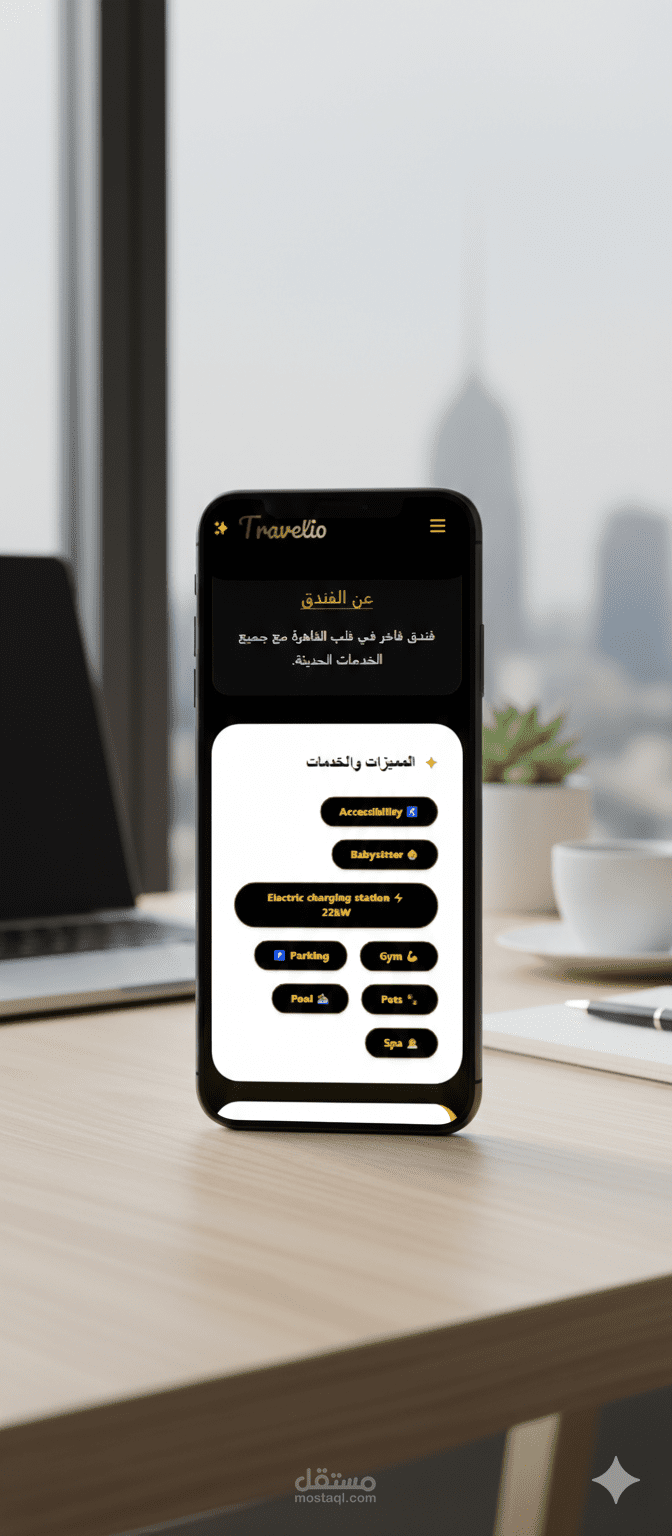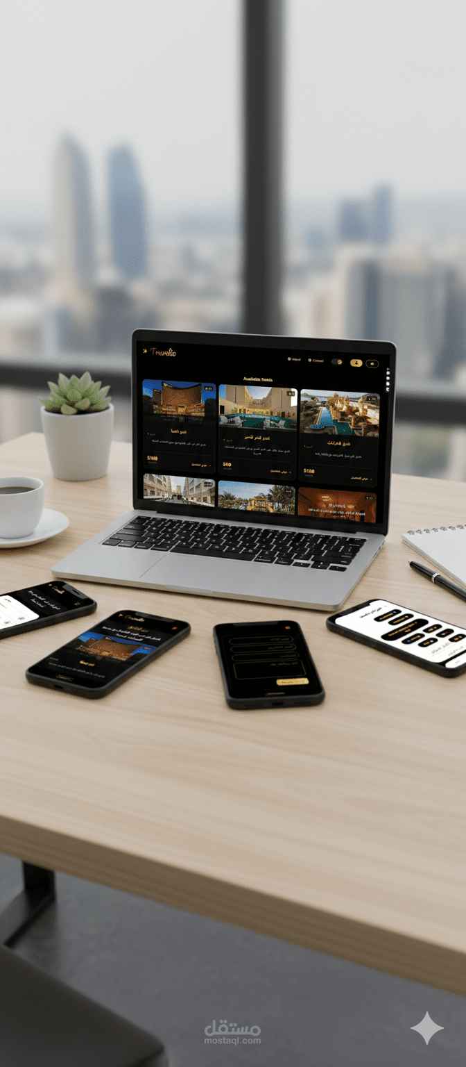 قمت بتطوير منصة متكاملة لحجز الفنادق (Hotel Booking Platform) باستخدام React للواجهة الأمامية وNode.js للباك إند، مع تصميم عصري وسريع الاستجابة عبر Tailwind CSS.