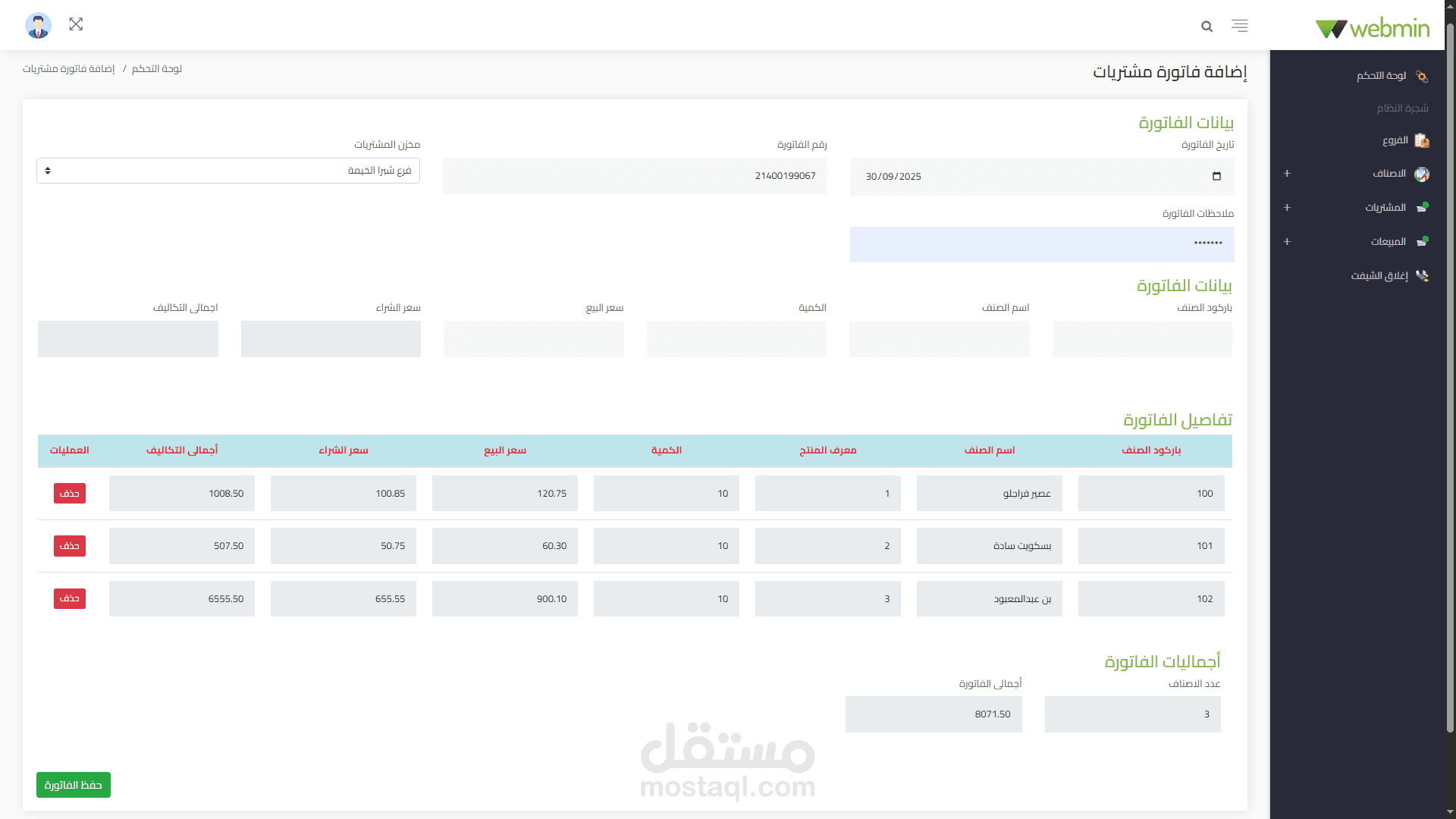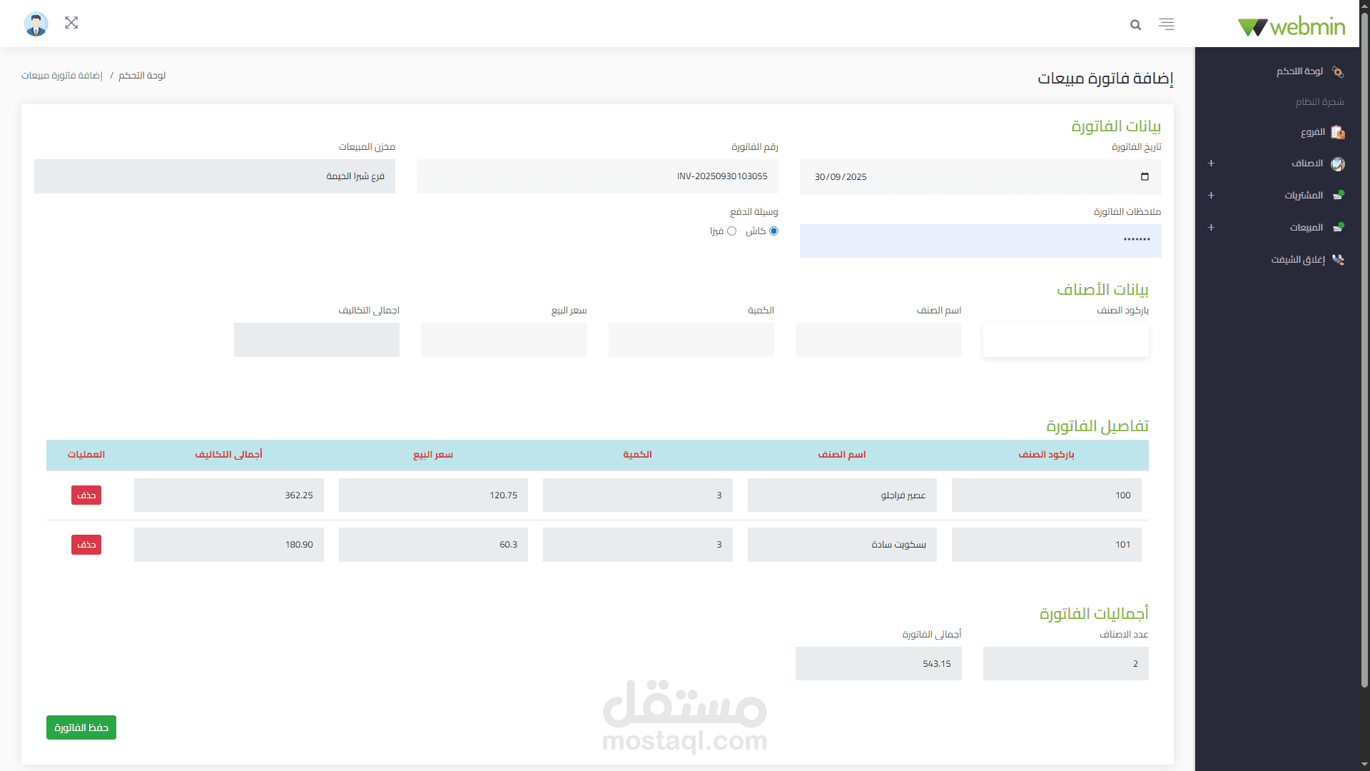 - صلاحيات دخول مخصصة لكل من الادمن و الموظف (الكاشير)