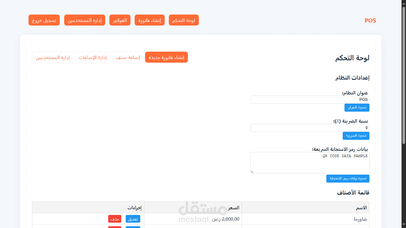 قمت بتطوير نظام نقاط بيع (POS) مخصص للمطاعم باستخدام PHP, JavaScript, HTML, CSS, MySQL. يتميز النظام بـ: