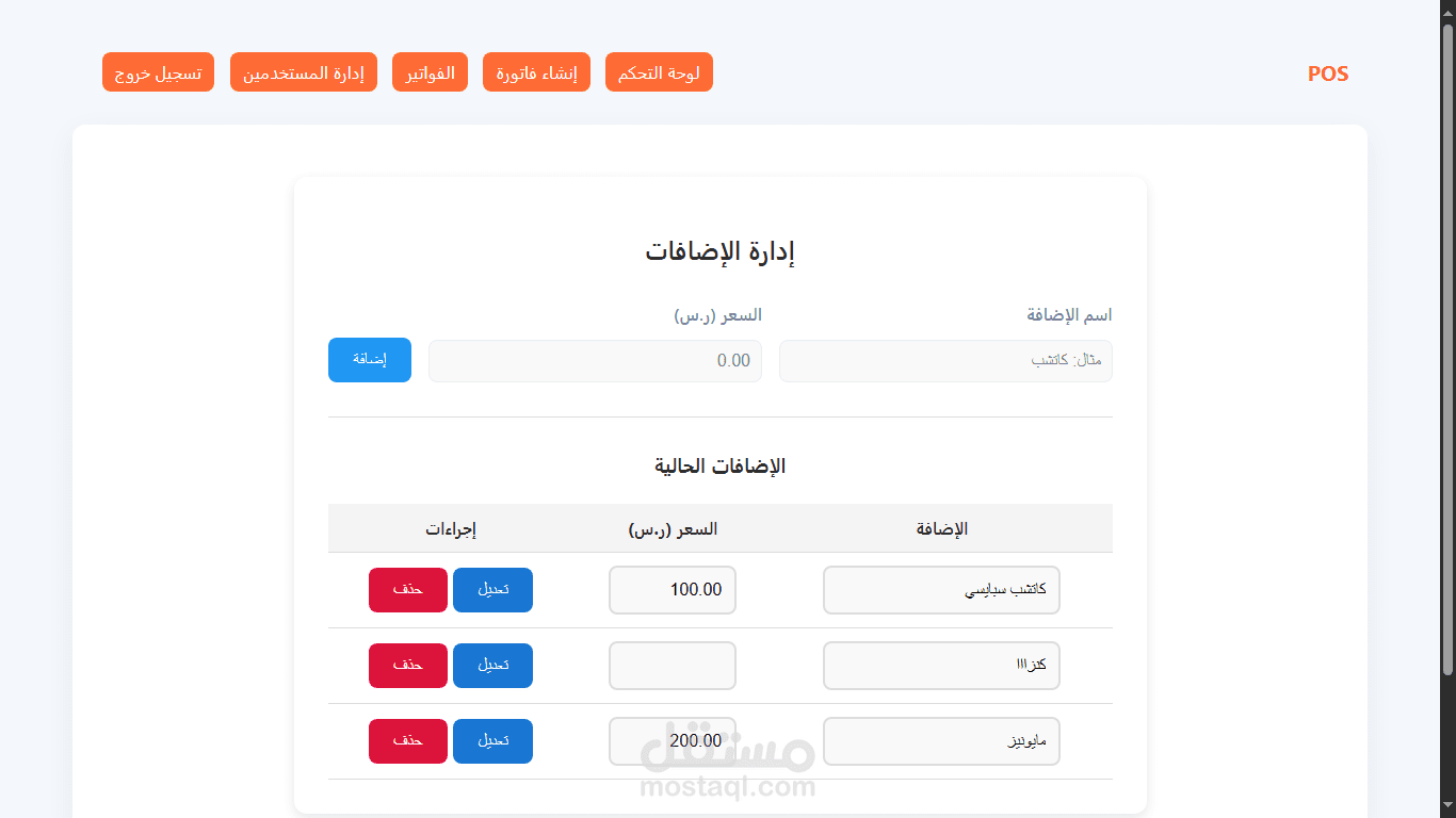 إدارة الأصناف والإضافات مع إمكانية تخصيص إضافات خاصة لكل صنف على حدة.