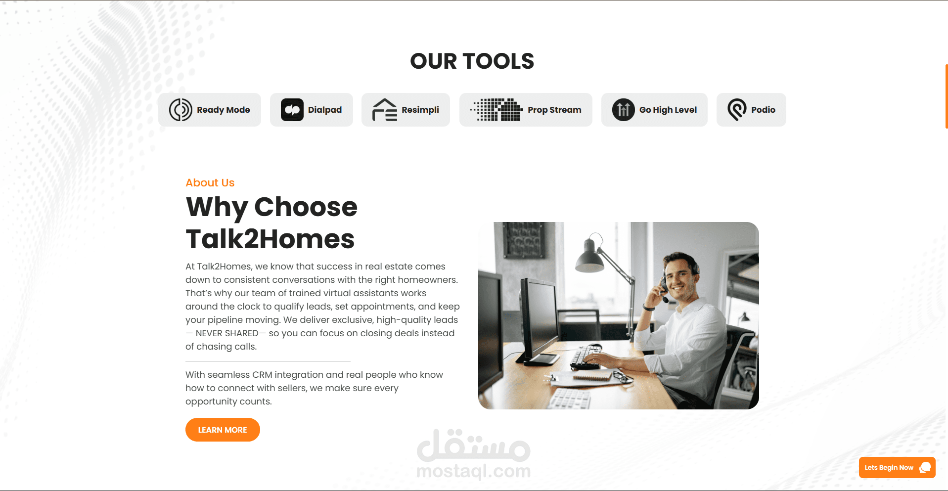 موقع احترافي مخصص لخدمات مراكز الاتصال، يوفّر: