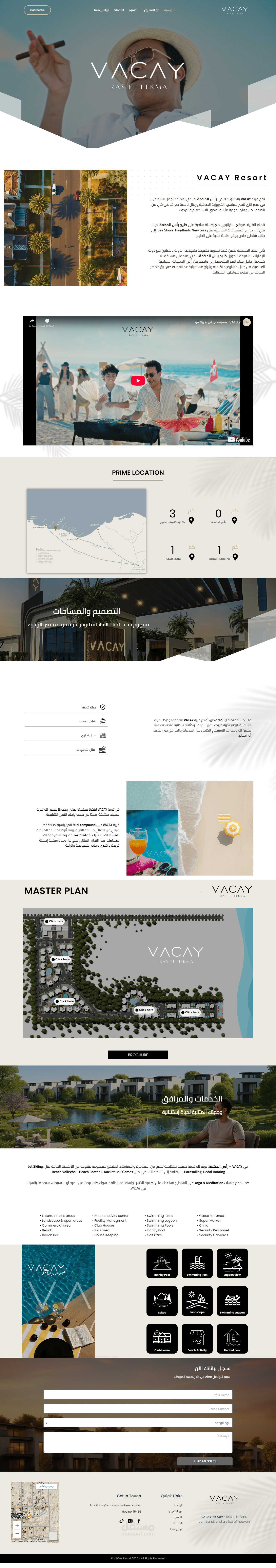 الموقع هو واجهة لمشروع "VACAY Resort"، وهو كومباوند ساحلي في قلب منطقة رأس الحكمة بالكيلو 205. تم بناء الموقع كصفحة واحدة متدفقة لضمان تجربة تصفح سريعة ومميزة، حيث يقدم نظرة شاملة وكاملة على كل جوانب المشروع بهدف جذب عملاء محتملين.