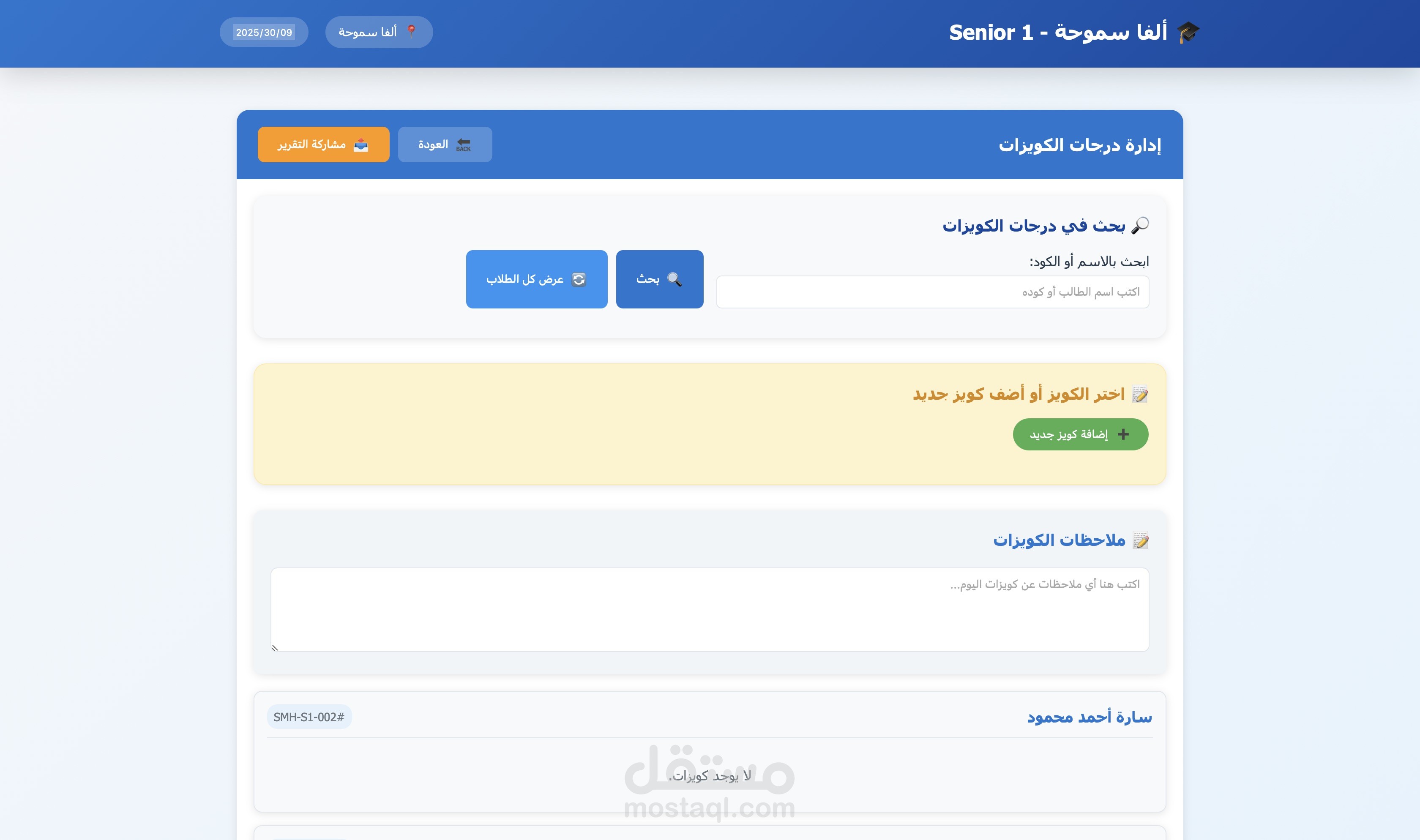 نظام ويب بسيط وفعال لإدارة الأنشطة اليومية للمجموعات الطلابية. مصمم للعمل مباشرة من المتصفح (موبايل/كمبيوتر) مع خاصية التخزين المحلي الدائم للبيانات.