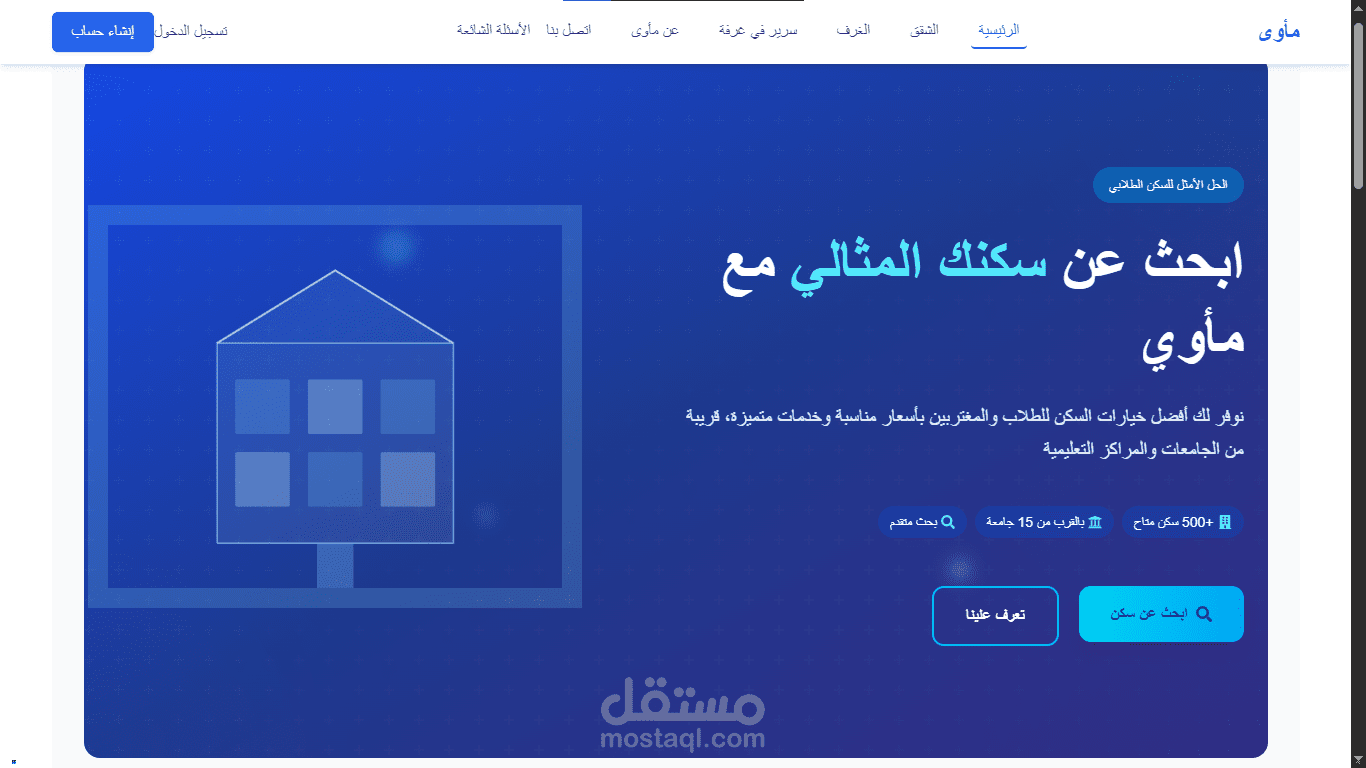 نصة ويب متكاملة تربط بين المُلّاك والطلاب الباحثين عن سكن عبر سوق عقاري تفاعلي متخصص في احتياجات الجامعات.