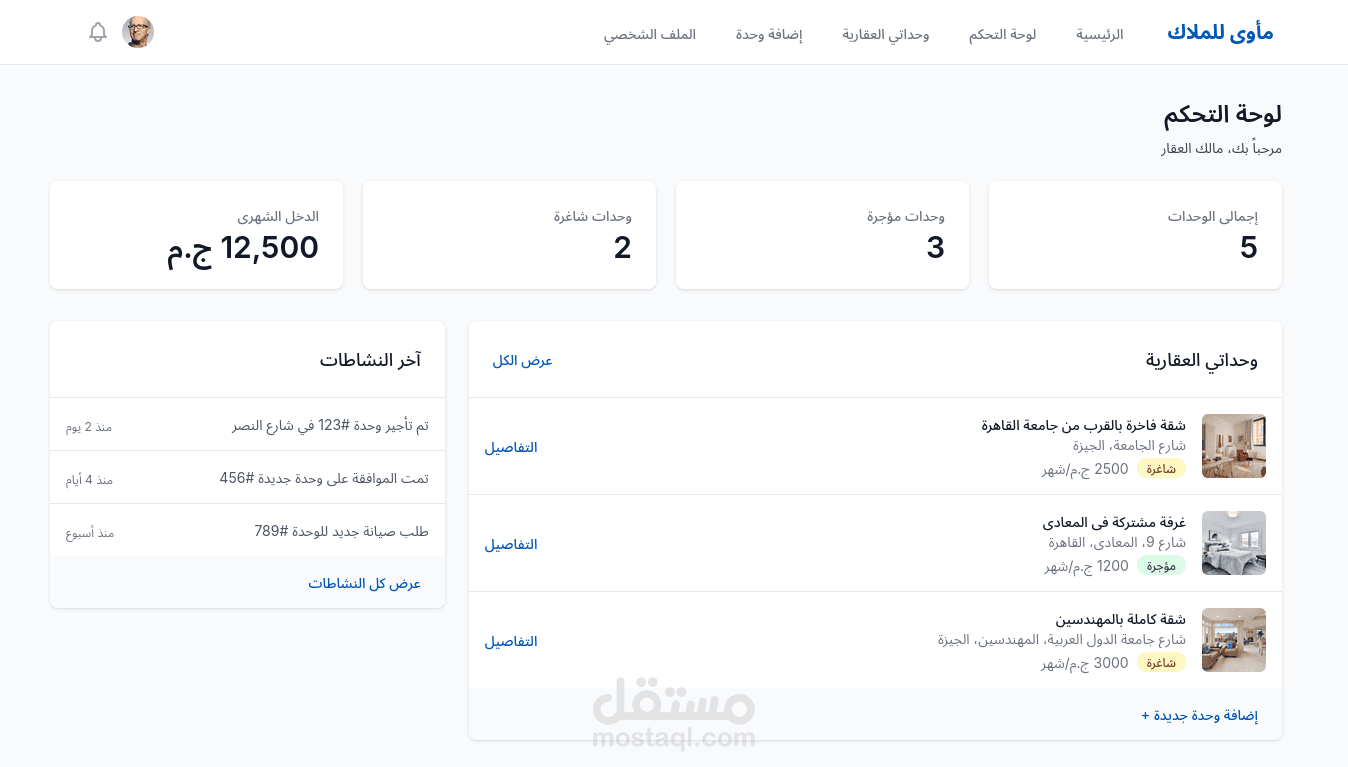 يقدم لكل فئة مستخدم (طالب - مالك - مسؤول) واجهة متخصصة مع دعم كامل للغتين العربية والإنجليزية وواجهة RTL.