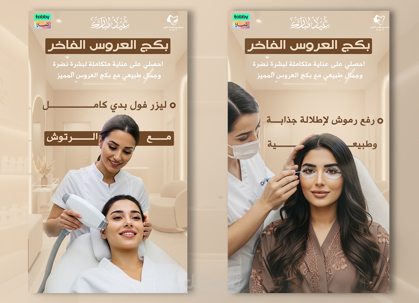 مجموعة من التصاميم التي قد قمت بها لقسم الجلدية في مجمع برج العرب الطبي في السعودي