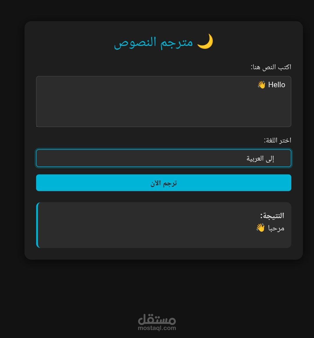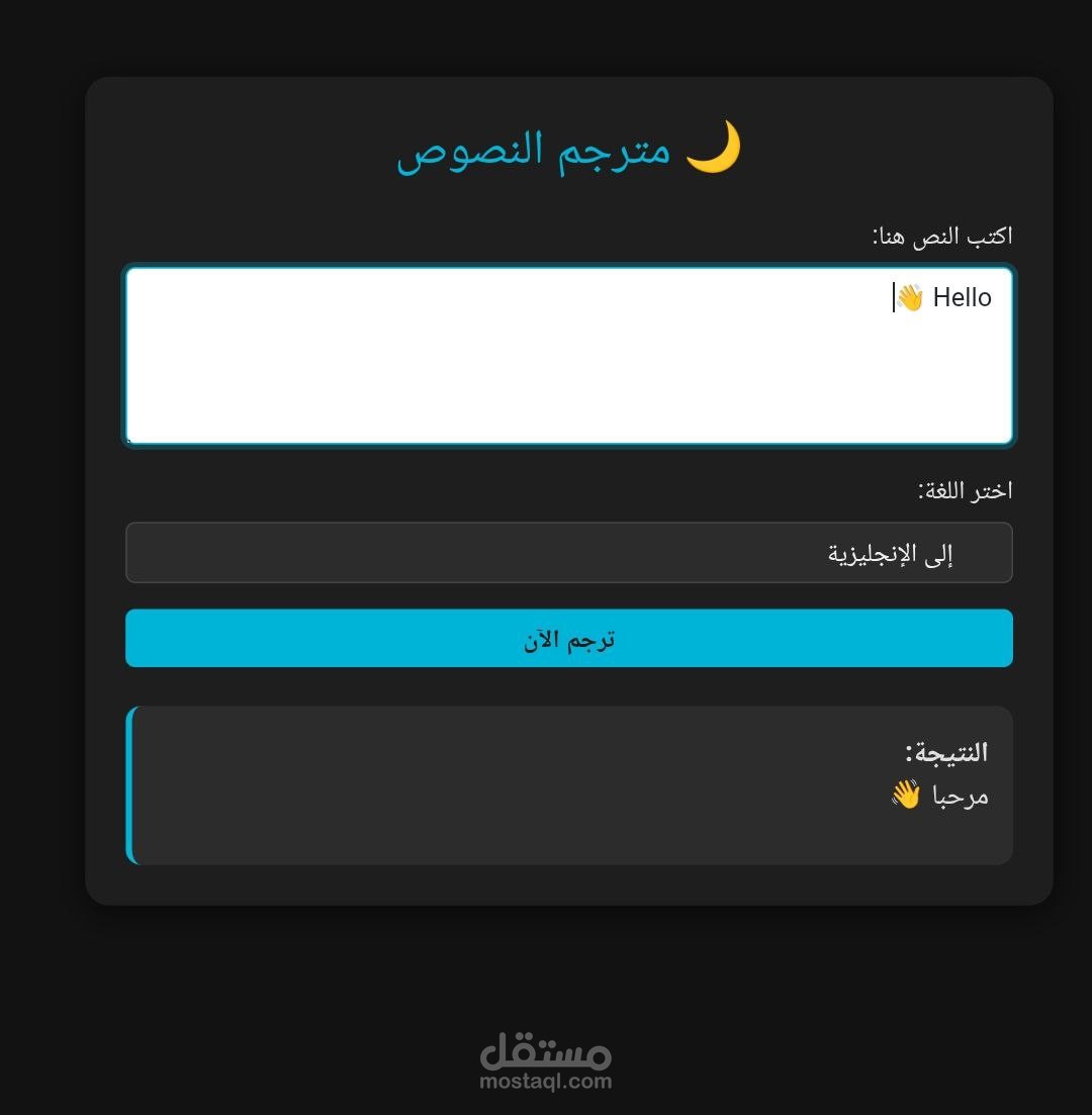 حقل إدخال نص وزر ترجمة مع اختيار اللغة.