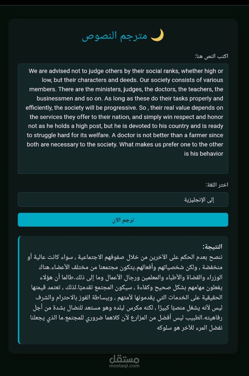 سأقوم ببرمجة موقع ترجمة نصوص احترافي باستخدام Python Flask مع تصميم واجهة داكنة جذابة (Dark Theme).