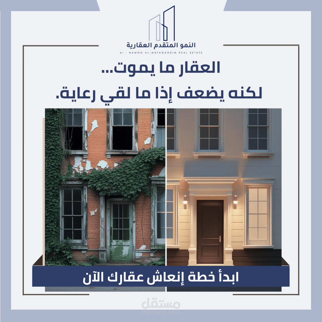 تصميمات سوشال ميديا لشركة عقاريه وبعض التصاميم تم انشائها ببرامج الذكاء الاصطناعي وهذا بطلب العميل.