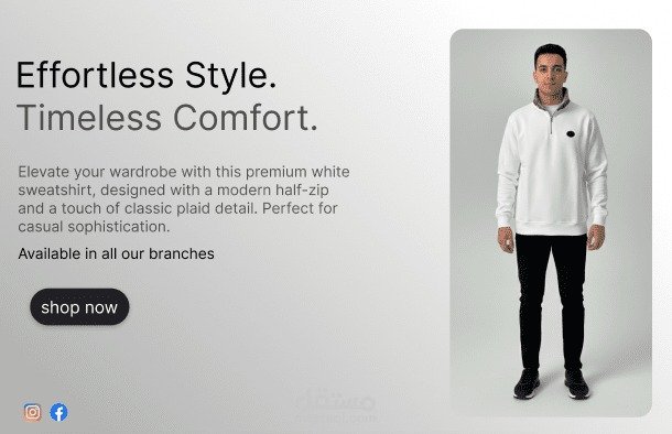 في هذا المشروع، قمت بتصميم بانر إعلاني احترافي لعرض منتج أزياء (سويت شيرت رجالي) بشكل جذاب ومقنع. الهدف الرئيسي كان إبراز جودة المنتج وتفاصيله الأنيقة، وتحويل المشاهد إلى عميل محتمل عبر رسالة بصرية مباشرة وموجزة.