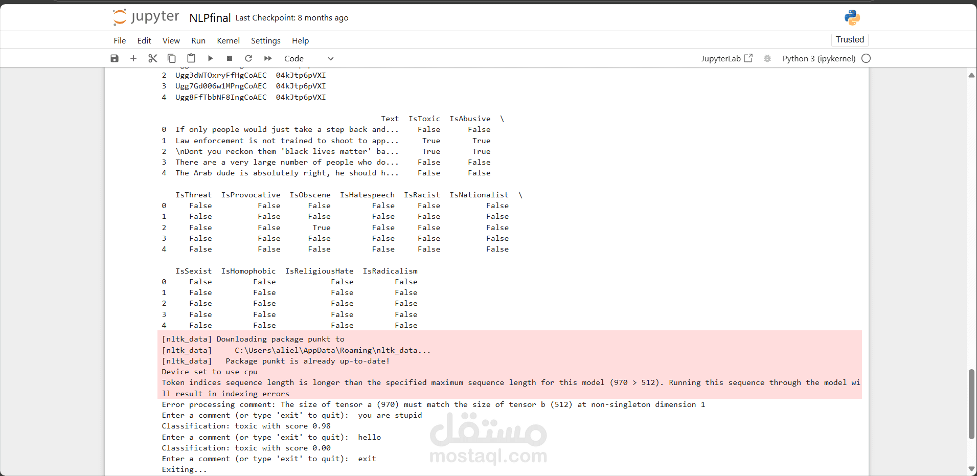 يهدف هذا المشروع إلى بناء نظام ذكي قادر على اكتشاف وحجب التعليقات المسيئة أو السامة بشكل تلقائي باستخدام تقنيات الذكاء الاصطناعي والتعلم العميق. يعتمد النظام على نماذج متقدمة في معالجة اللغات الطبيعية (NLP) لتحليل النصوص المكتوبة والتعرف على أنماط الكلام المسيء مثل: السب، التنمر، خطاب الكراهية، أو أي محتوى ضار يؤثر سلبًا على بيئة النقاش.