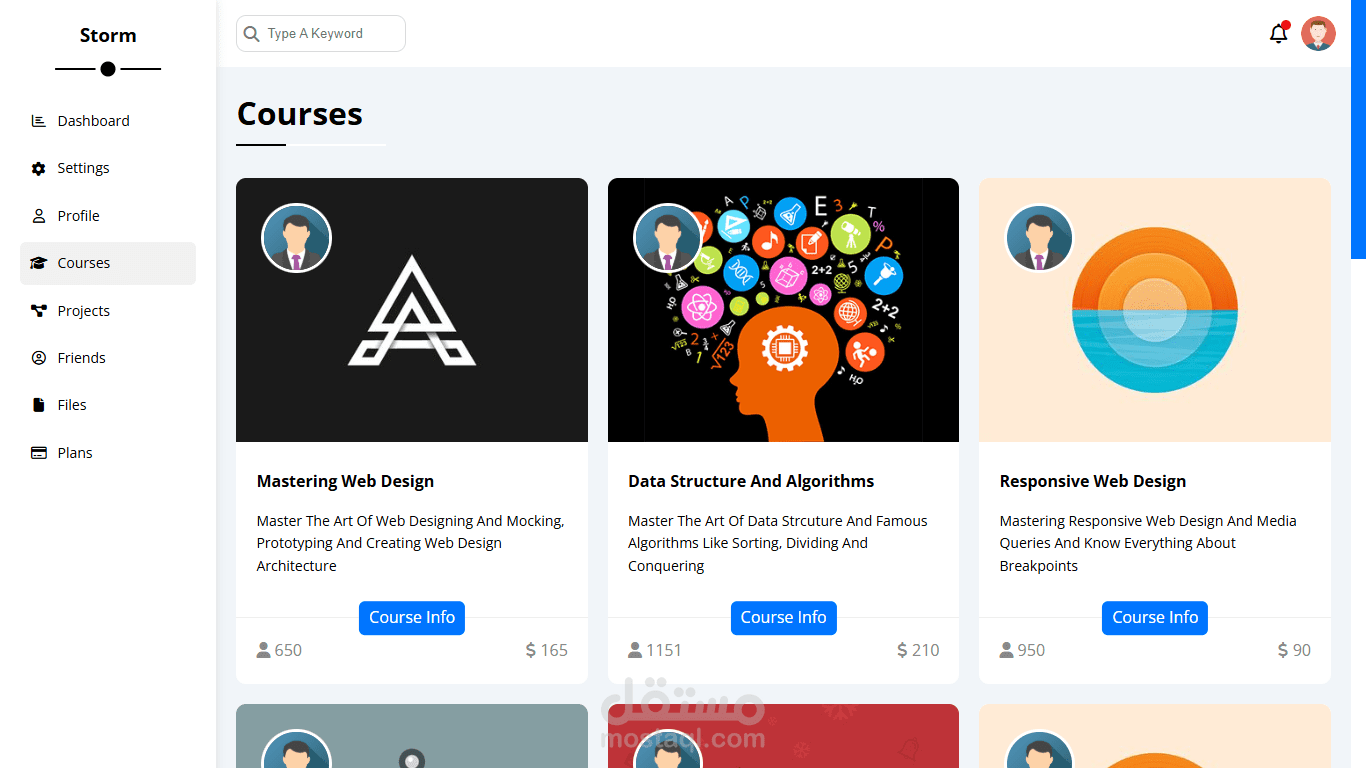 - نظام تخطيط (Layout) منظم يُسهّل عرض البيانات والبطاقات الإحصائية