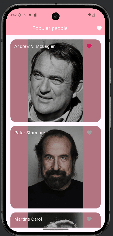 - عرض قائمة بالمشاهير مع صورهم ومعلومات أساسية.