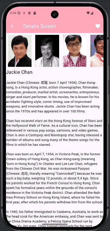 قمت بتطوير تطبيق موبايل باستخدام Flutter لعرض قائمة من المشاهير مع إمكانية استعراض تفاصيل كل شخص.