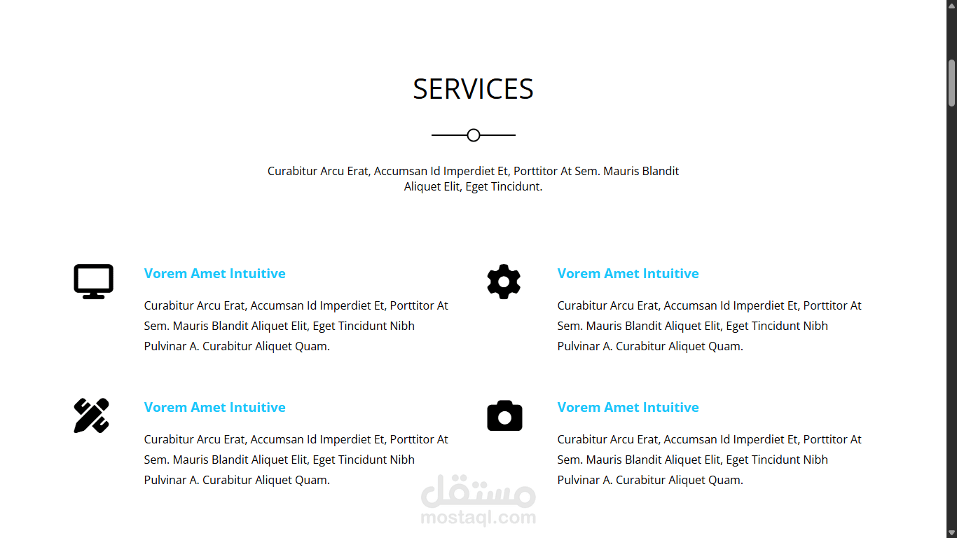 - تنظيم المكونات ضمن أقسام واضحة (قسم عرض الخدمات، فريق العمل، من نحن، تواصل، الخ)