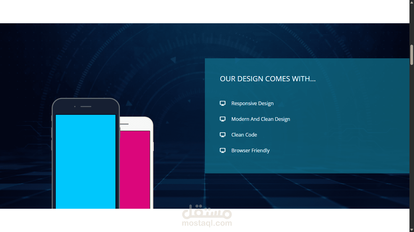 - تصميم متجاوب (Responsive) بحيث يظهر الموقع بشكل ممتاز على الهواتف، التابلت، والشاشات الكبيرة