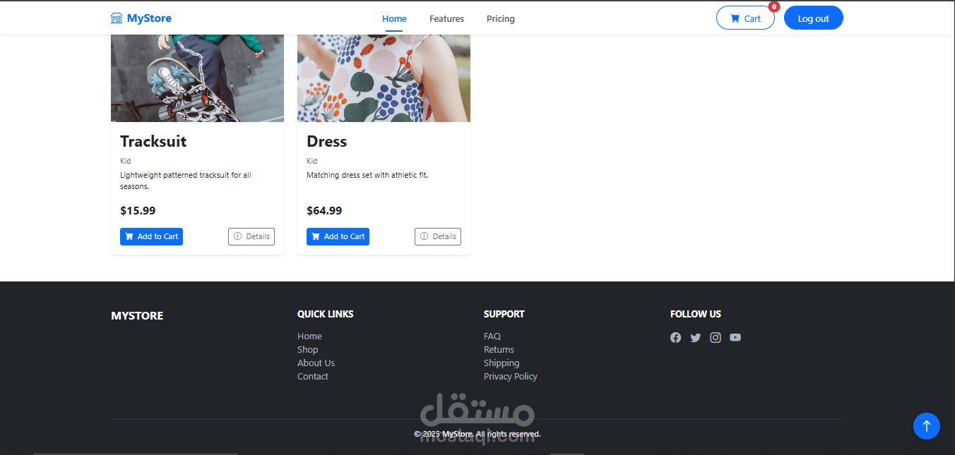 MyStore هو تطبيق ويب لمتجر إلكتروني تم تطويره باستخدام HTML, CSS, JavaScript, Bootstrap.