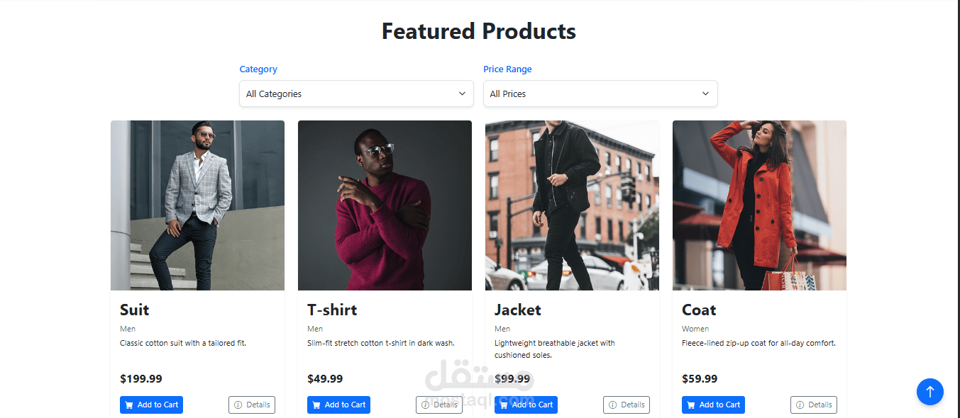 تفاعل ديناميكي (مثلاً إضافة المنتجات إلى السلة، عرض التفاصيل)