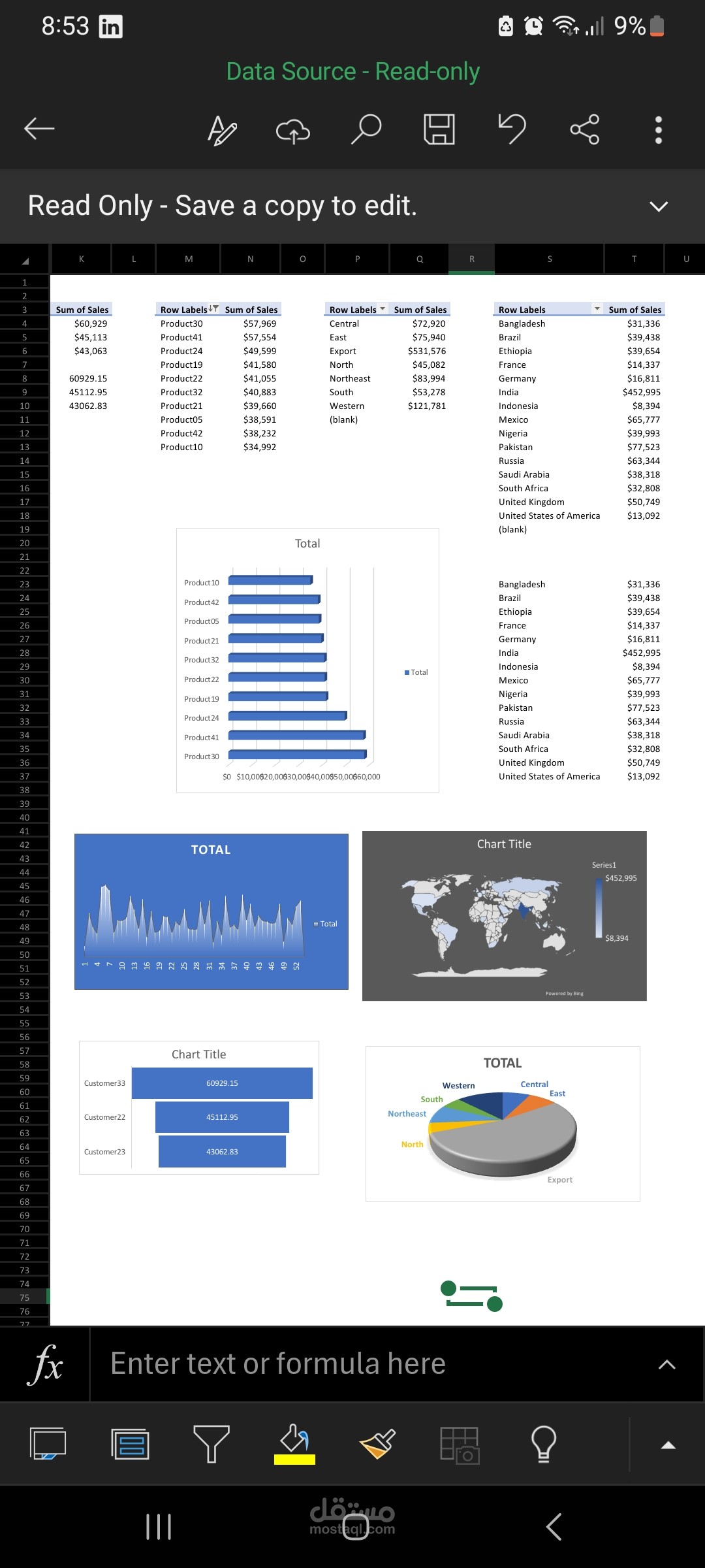 التوزيع الجغرافي للمبيعات: خريطة عالم تفاعلية توضح حجم المبيعات في كل دولة، مما يساعد على تحديد الأسواق الرئيسية والواعدة.
