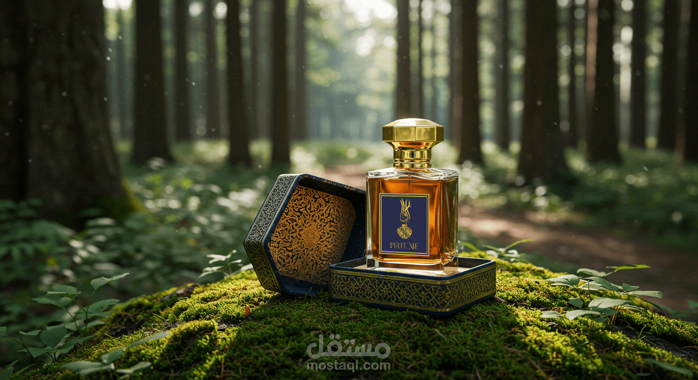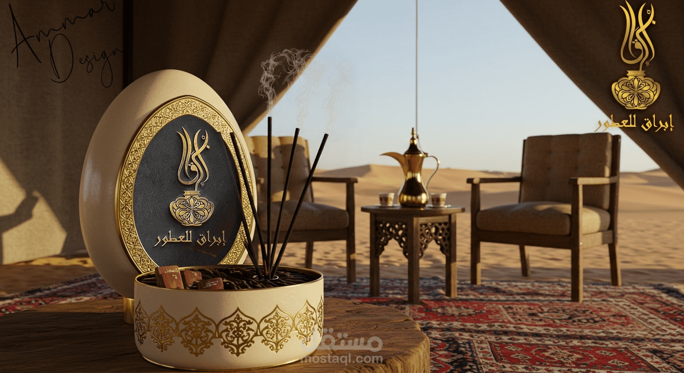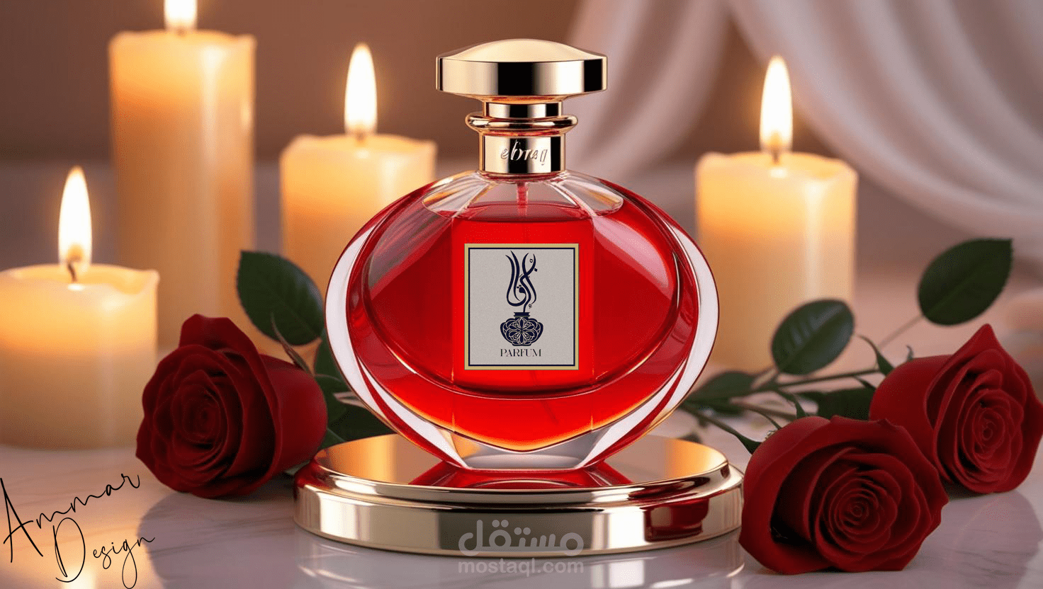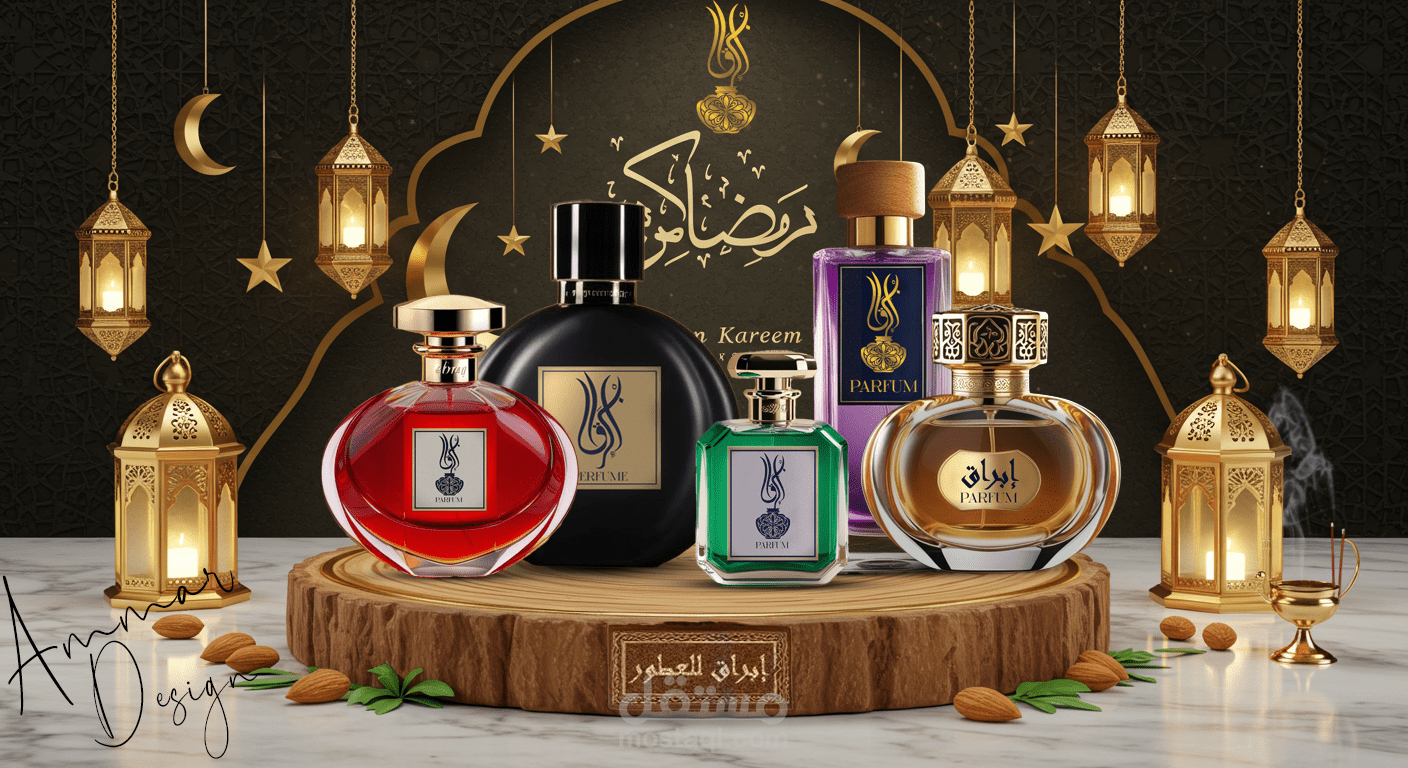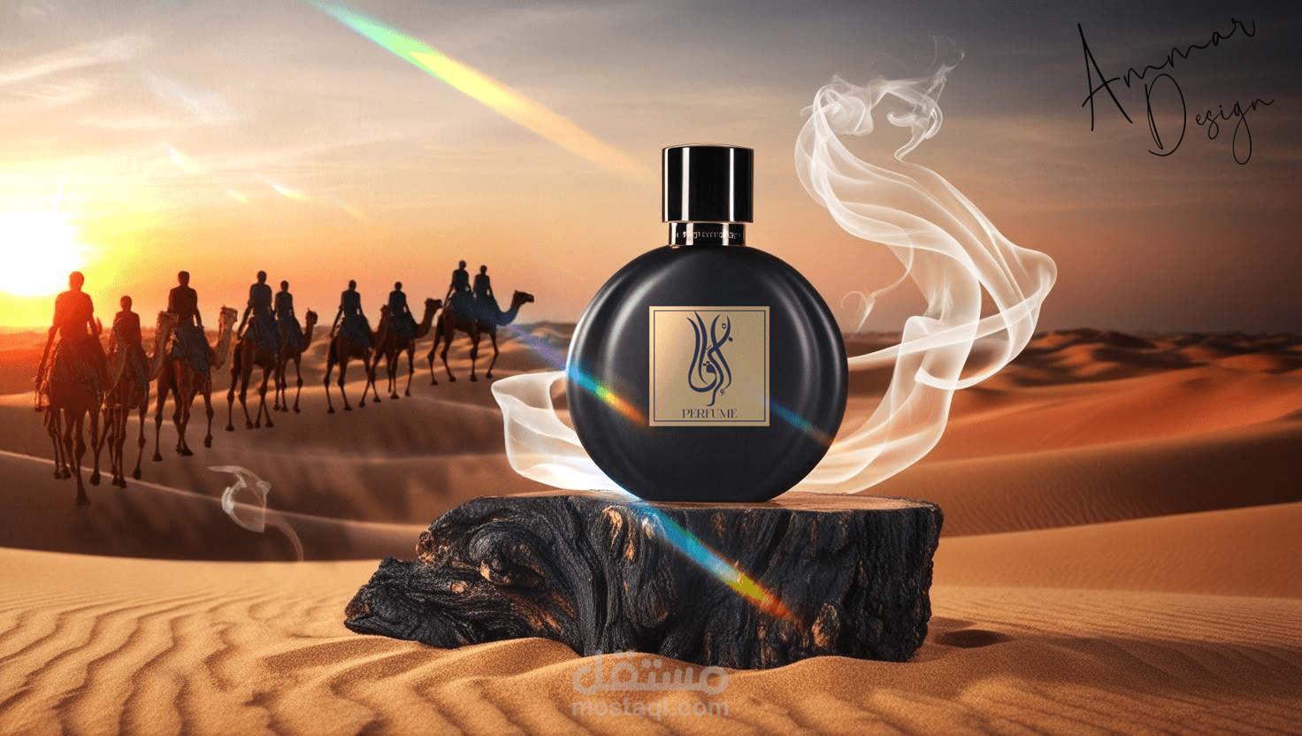 الحضارة الشرقية ورقيها، فيما يُمثل الخط العربي المتشابك أعلاه روح العطور، حيث تتراقص الحروف