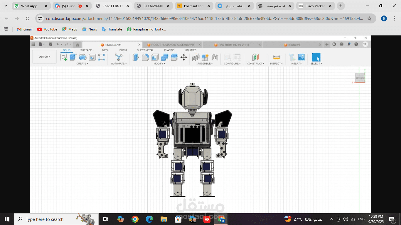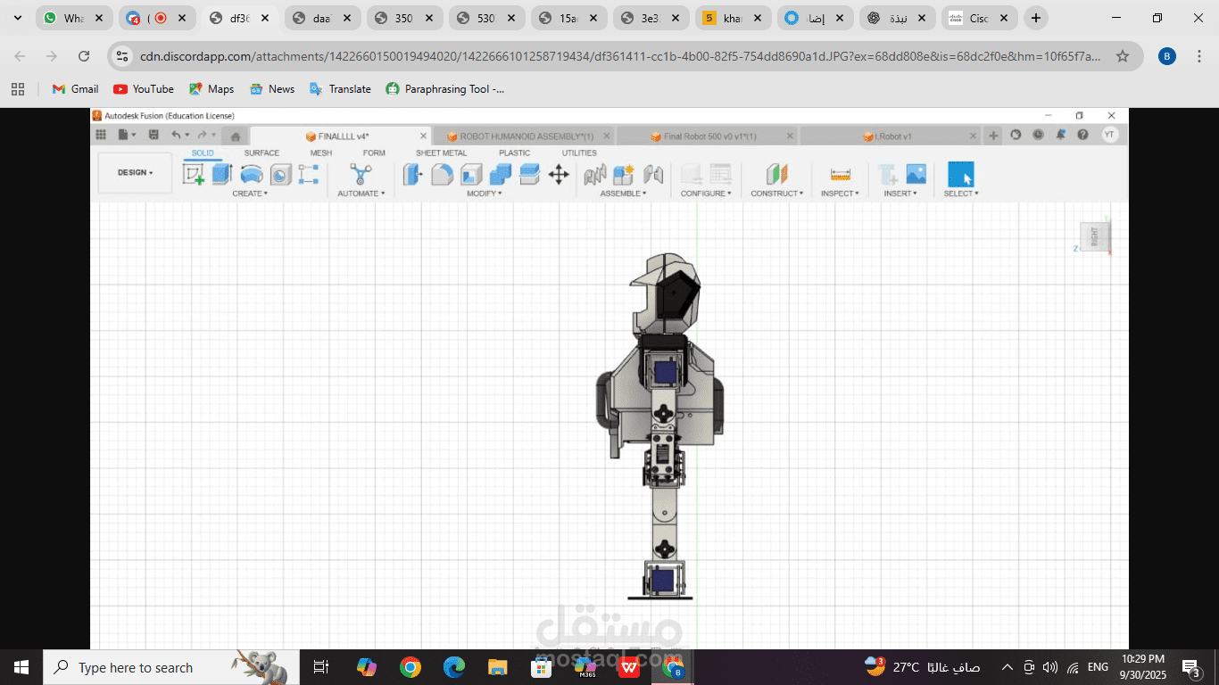 To design, build, and program a humanoid robot that replicates human-like motion, perception, and interaction by integrating mechanical design, sensors, actuators, and artificial intelligence. The project aims to create a versatile platform capable of performing daily tasks, recognizing and responding to voice or visual commands, and interacting naturally with users. Emphasis will be placed on balance, mobility, and dexterity to enable walking, object handling, and gesture imitation. The system will incorporate advanced control algorithms, real-time data processing, and safety mechanisms to ensure reliable operation. Ultimately, this humanoid robot will serve as both a research and practical tool, showcasing the potential of robotics in education, healthcare, assistance, and human–machine collaboration.