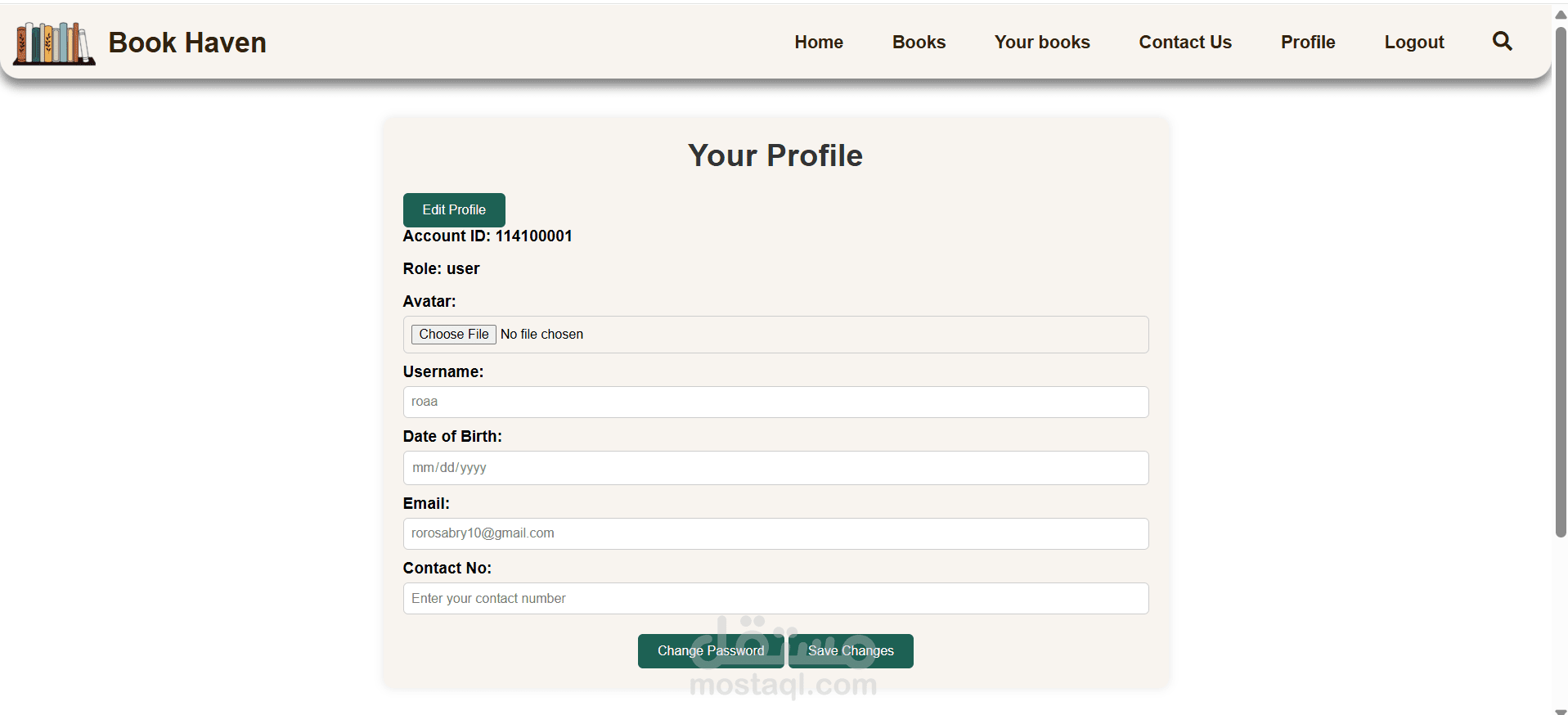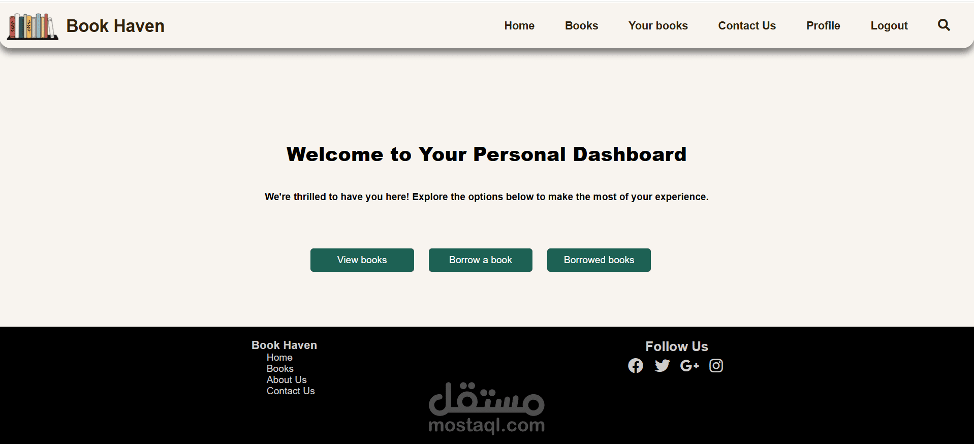 2- صفحة رئيسية (Home Page) للمستخدم بعد تسجيل الدخول.