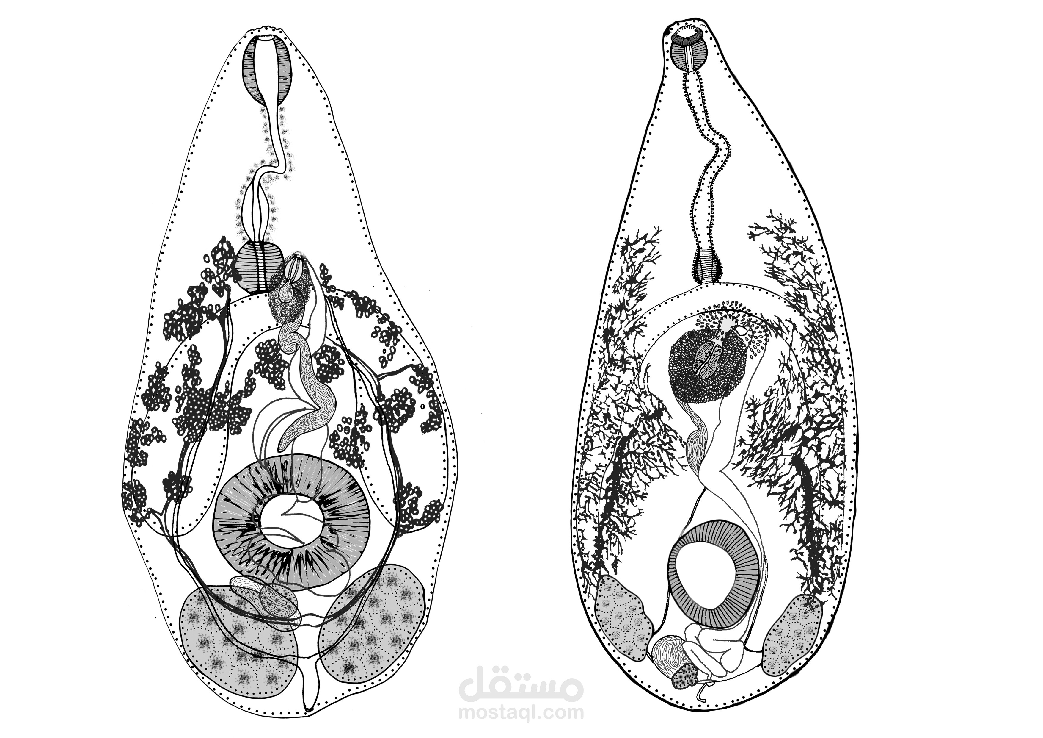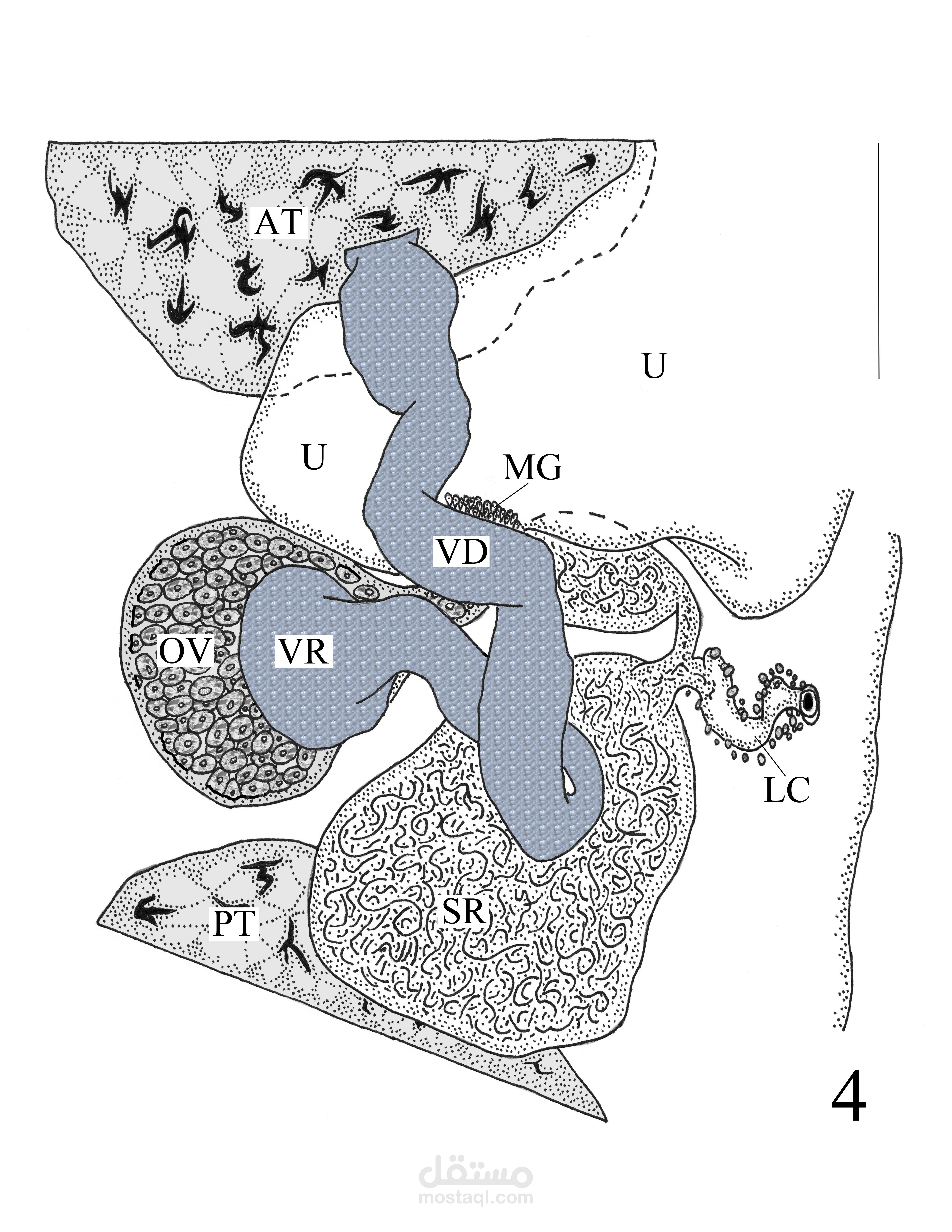 -الملاحظات المورفولوجية التفصيلية: تم إجراء ملاحظات مورفولوجية دقيقة، خاصة على الجهاز التناسلي للطفيل Flagellotrema convolutum لتقديم إعادة وصف دقيقة للنوع.