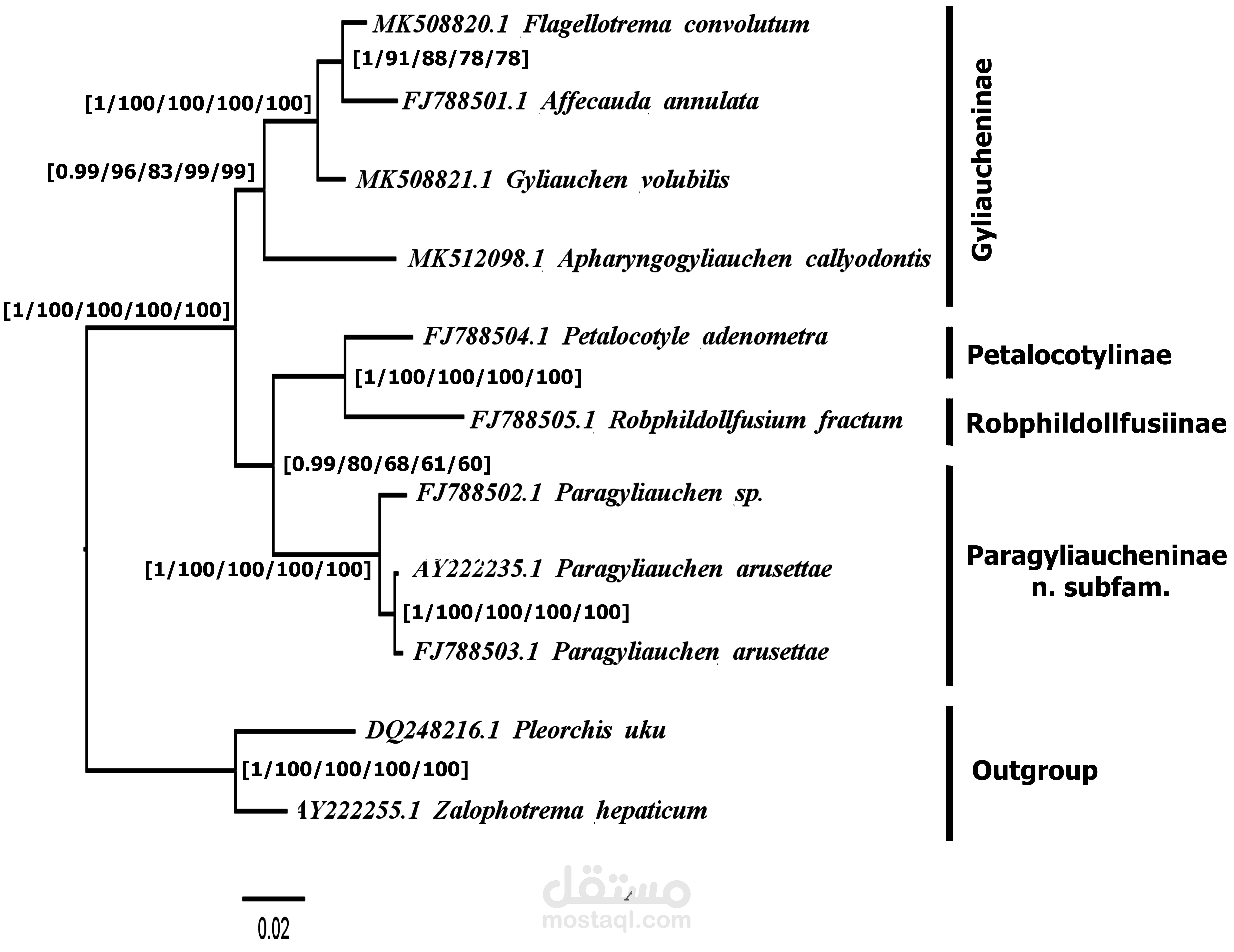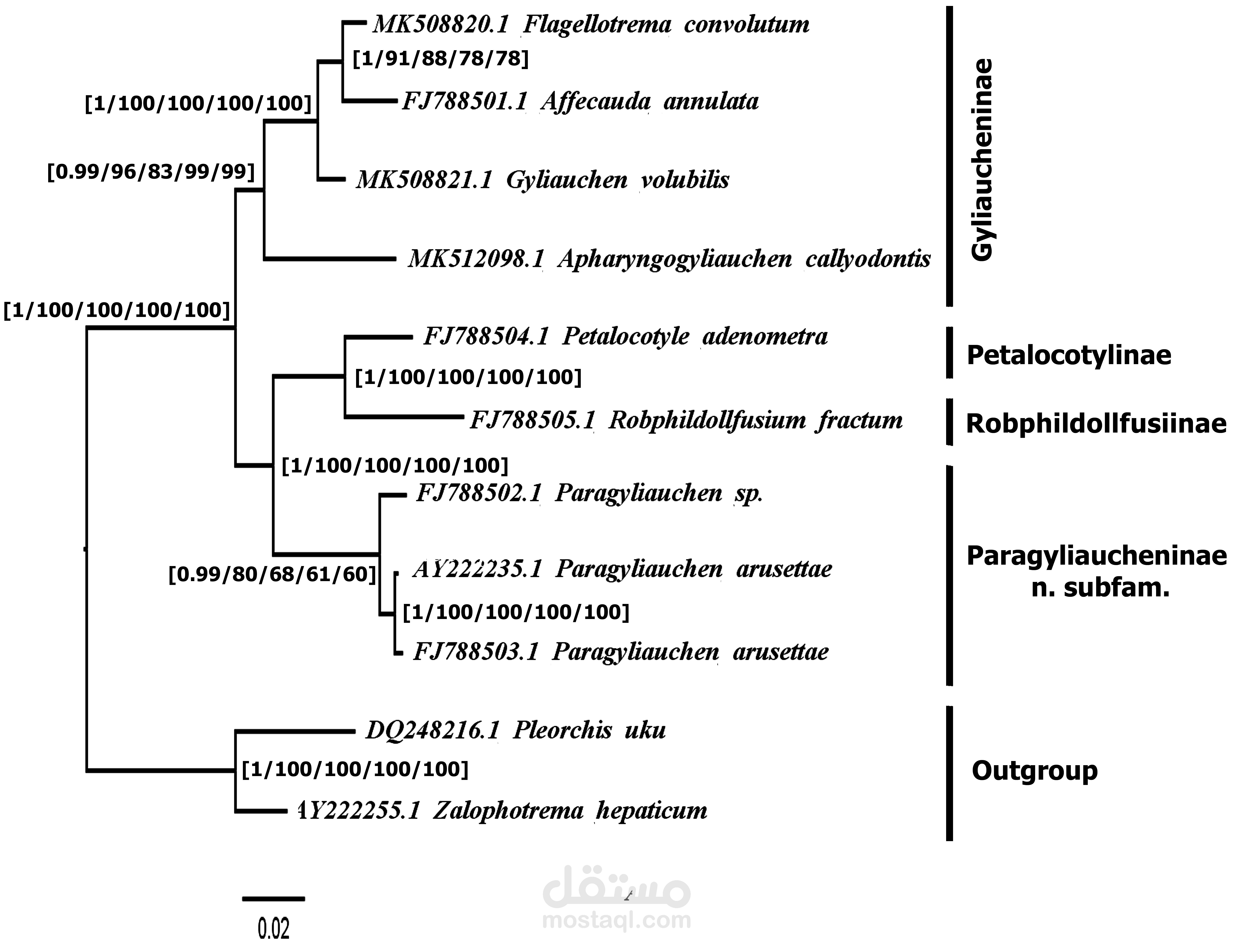 دراسة تصنيفية وفيزيولوجية جزيئية متعمقة تتركز حول طفيل Flagellotrema convolutum وتصنيف فصيلة Gyliauchenidae