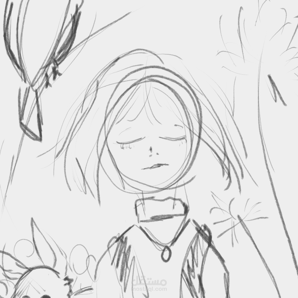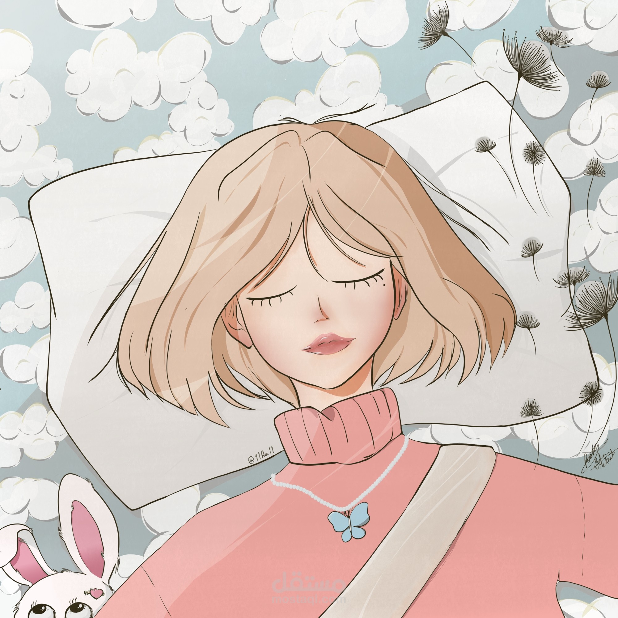 رسم شخصي أنجزته أثناء تخيلي لحظة راحة وهدوء. لذلك اخترت له عنوان Rui، وهو اسم يعبر عن جانبي الهادئ والمتأمل.