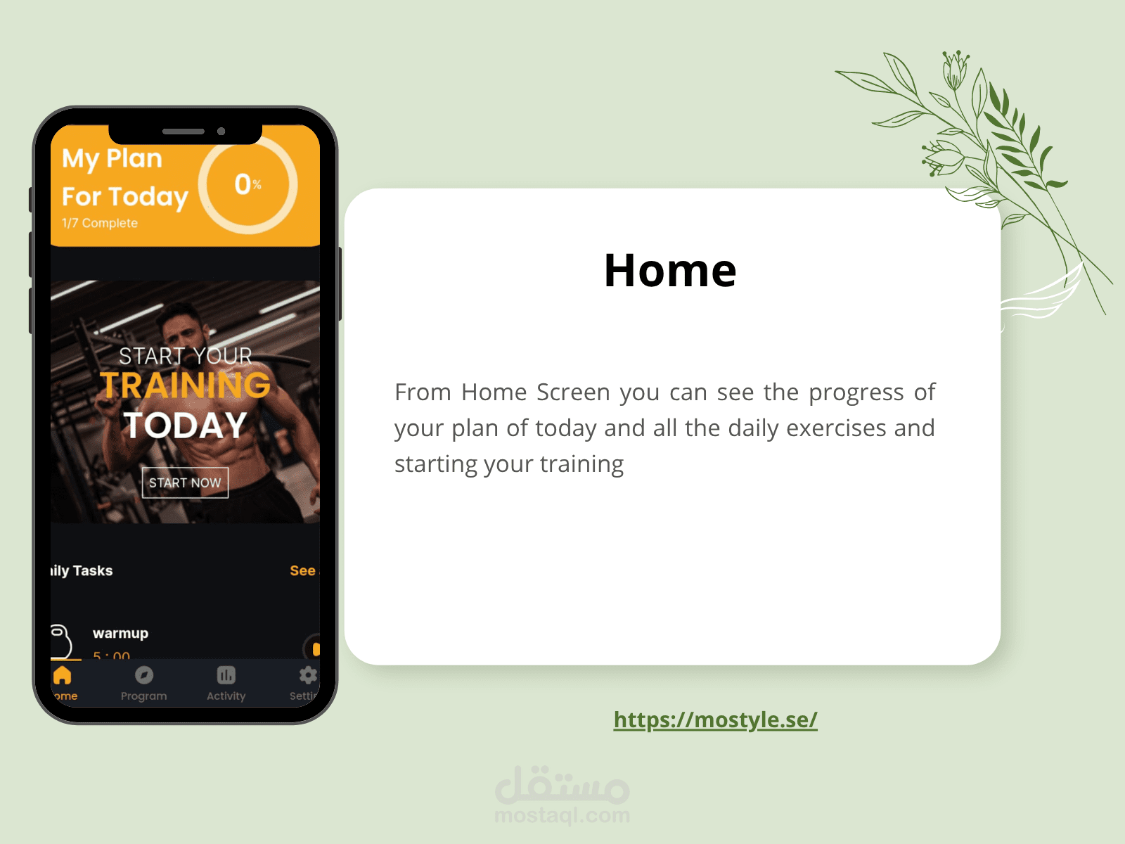 Mo App is an application that helps the user to do his daily exercises, follow up with videos step by step &