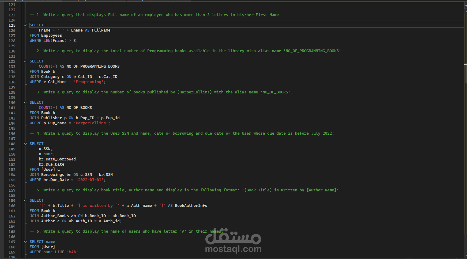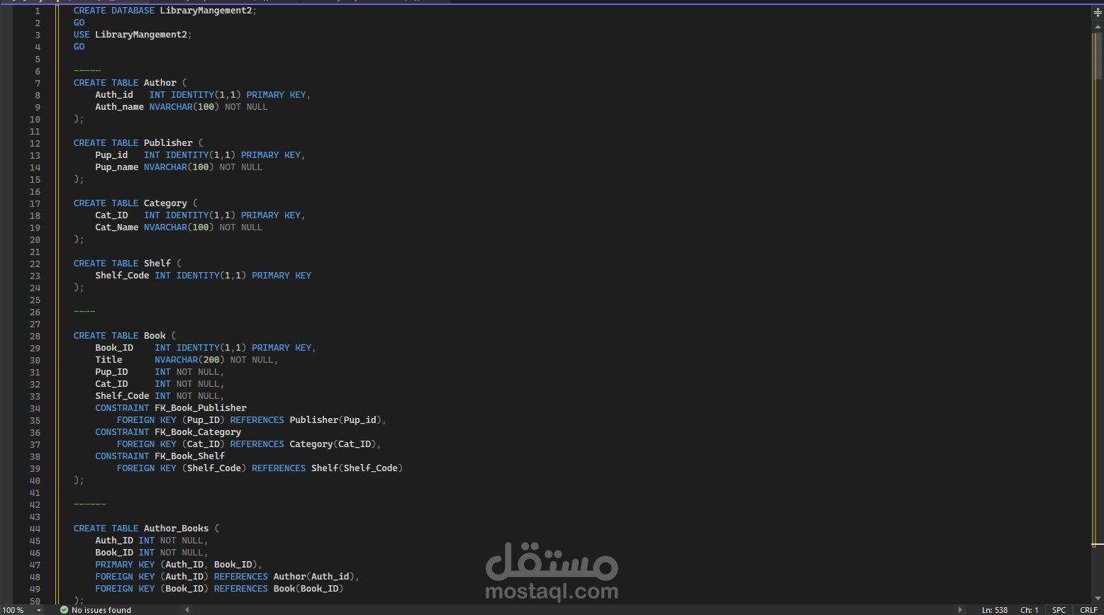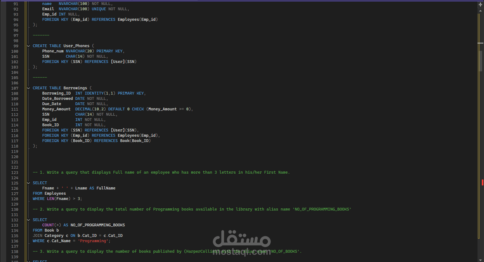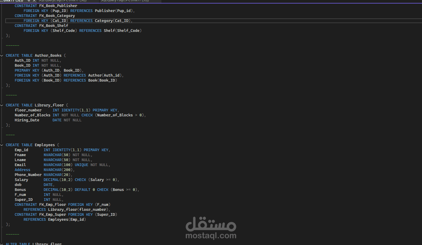 قاعدة بيانات متكاملة لإدارة نظام مكتبة شاملة تتعامل مع الكتب، المؤلفين،