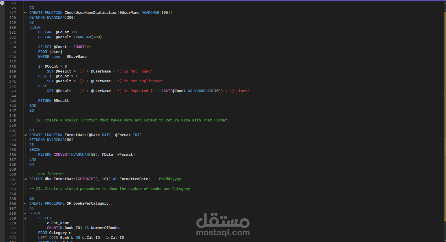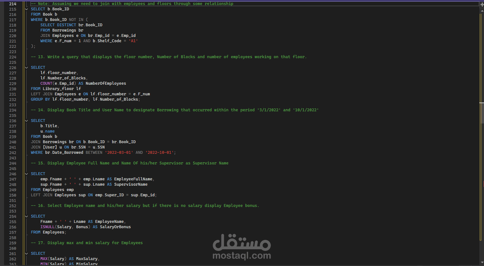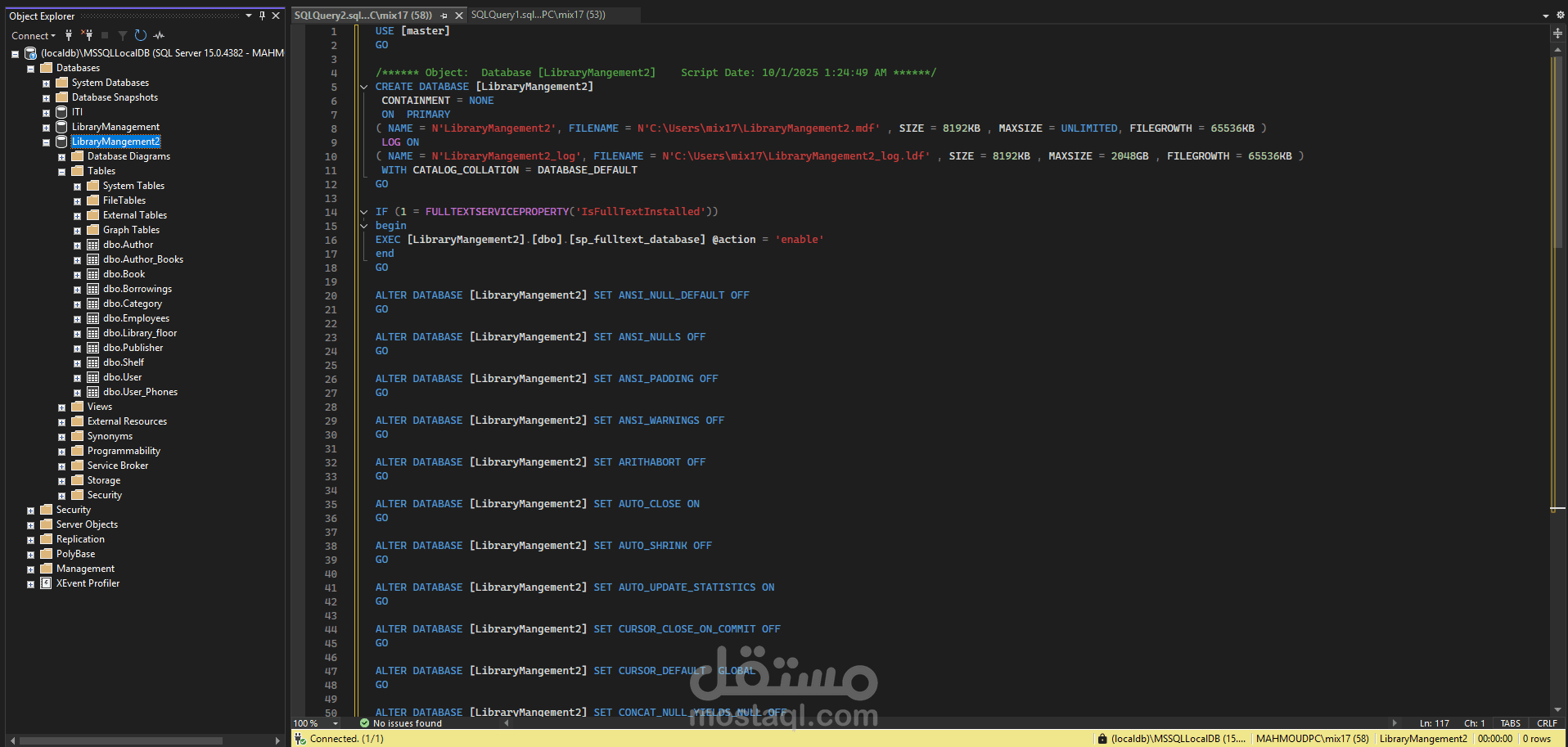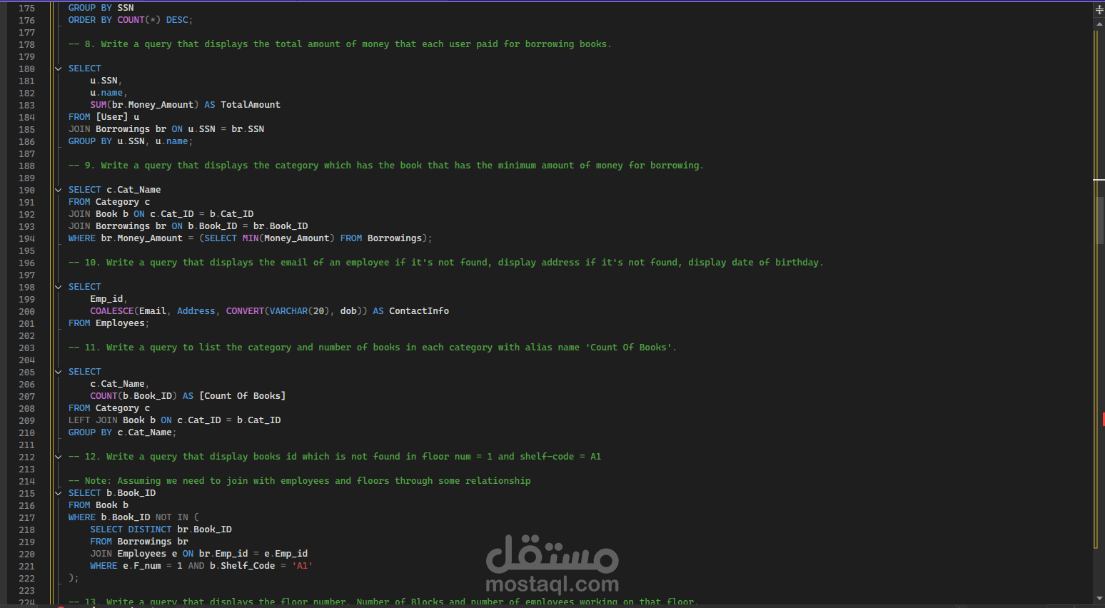 قاعدة بيانات متكاملة لإدارة نظام مكتبة شاملة تتعامل مع الكتب، المؤلفين،