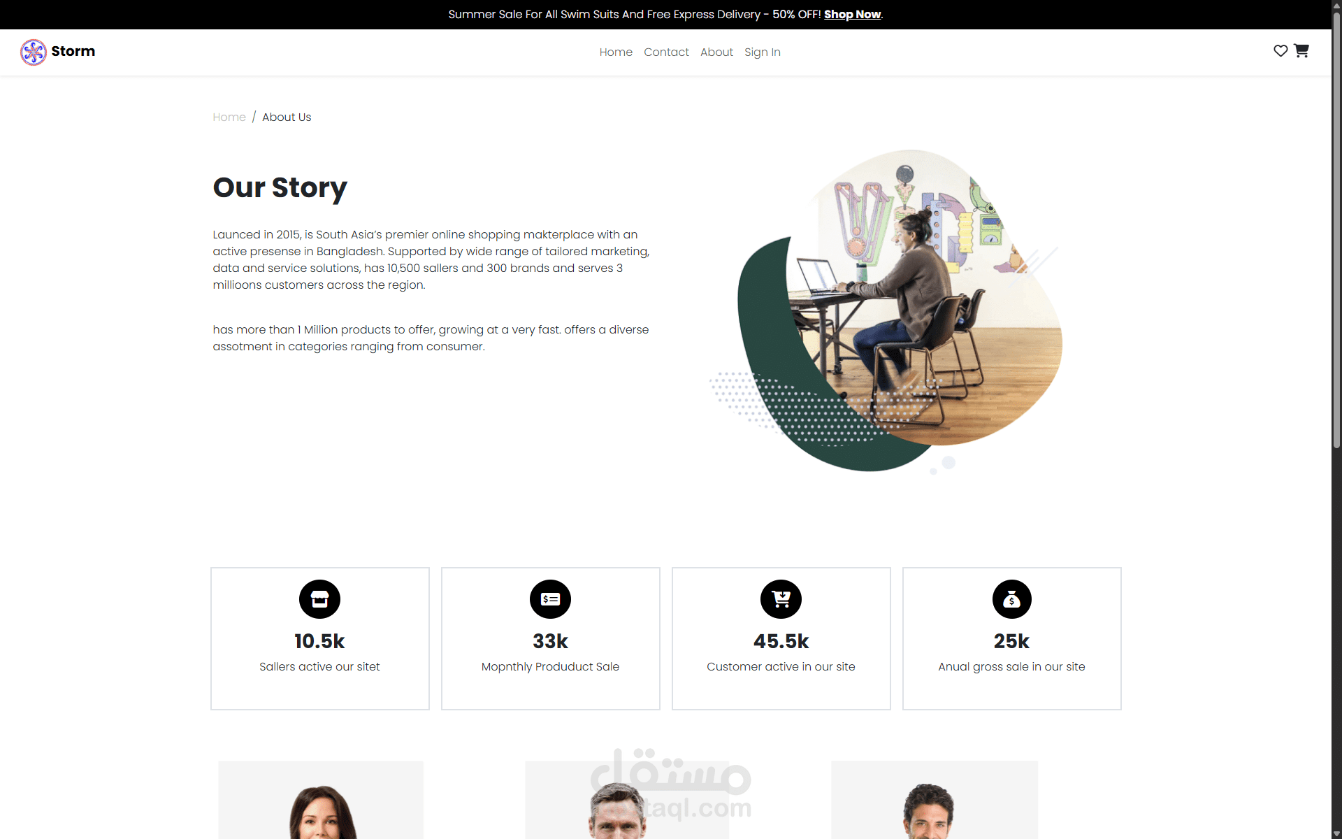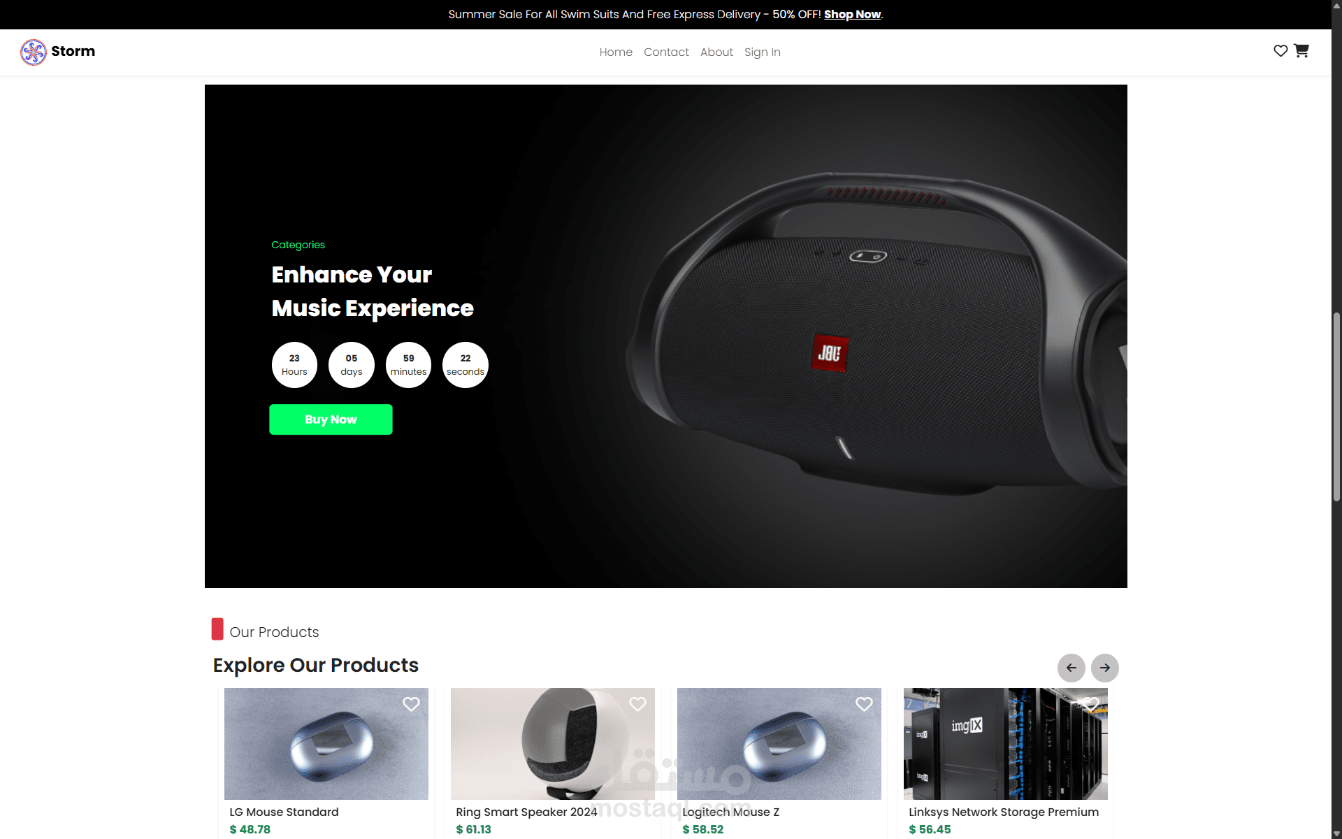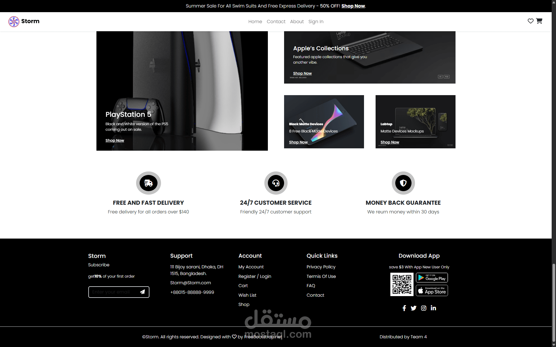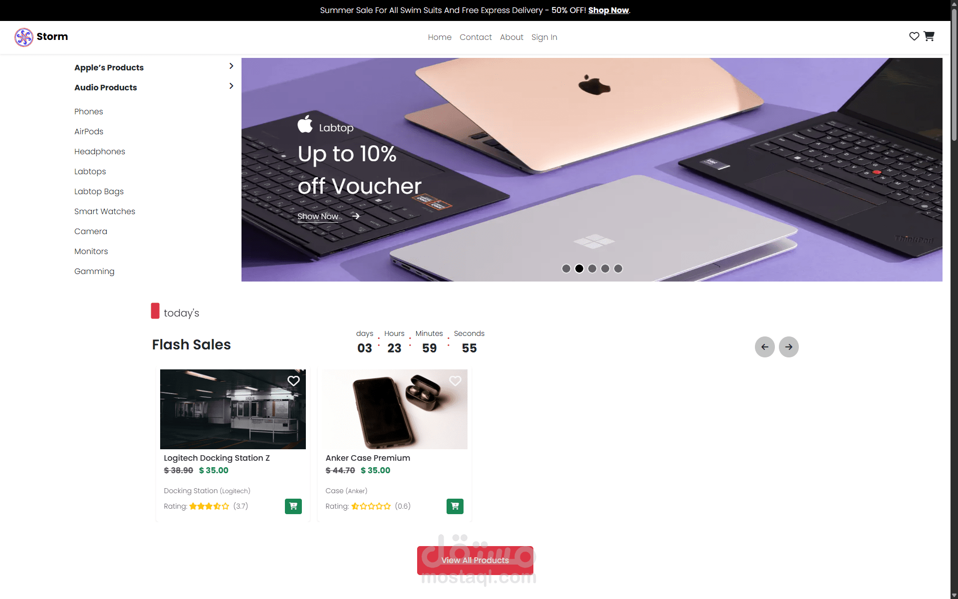- أقسام مخصصة: Flash Sales، Best Selling، New Arrivals
