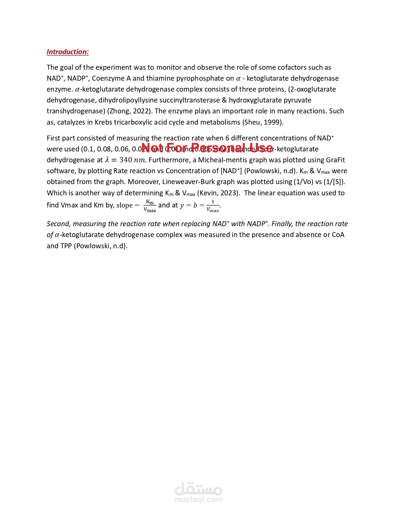 تقرير علمي باللغة الإنجليزية يتكون من 9 صفحات يتكلم عن تجربة متعلقة بالأنزيمات المساعدة والفيتامينات لمادة الكيمياء الحيوية. تم استخدام برنامج اكسل وبرنامج الورود.