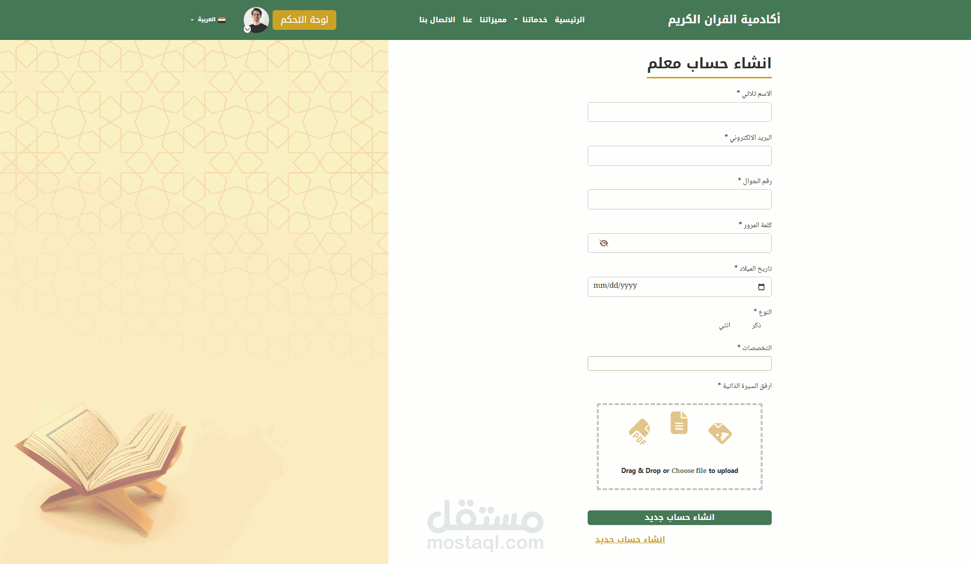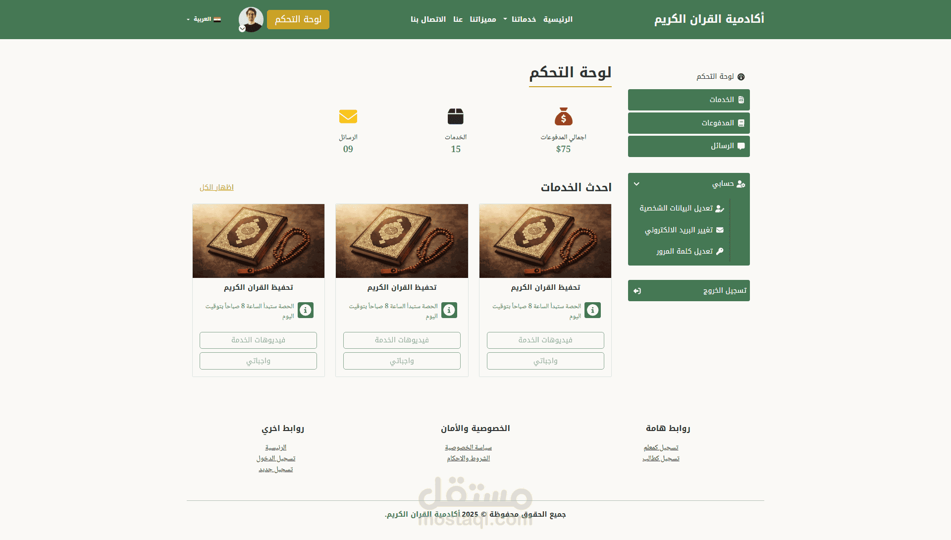 لوحات تحكم مخصصة: لوحة للطالب لمتابعة تقدمه، لوحة للمعلم لإدارة الحلقات، ولوحة للإدارة لمتابعة النظام بالكامل.