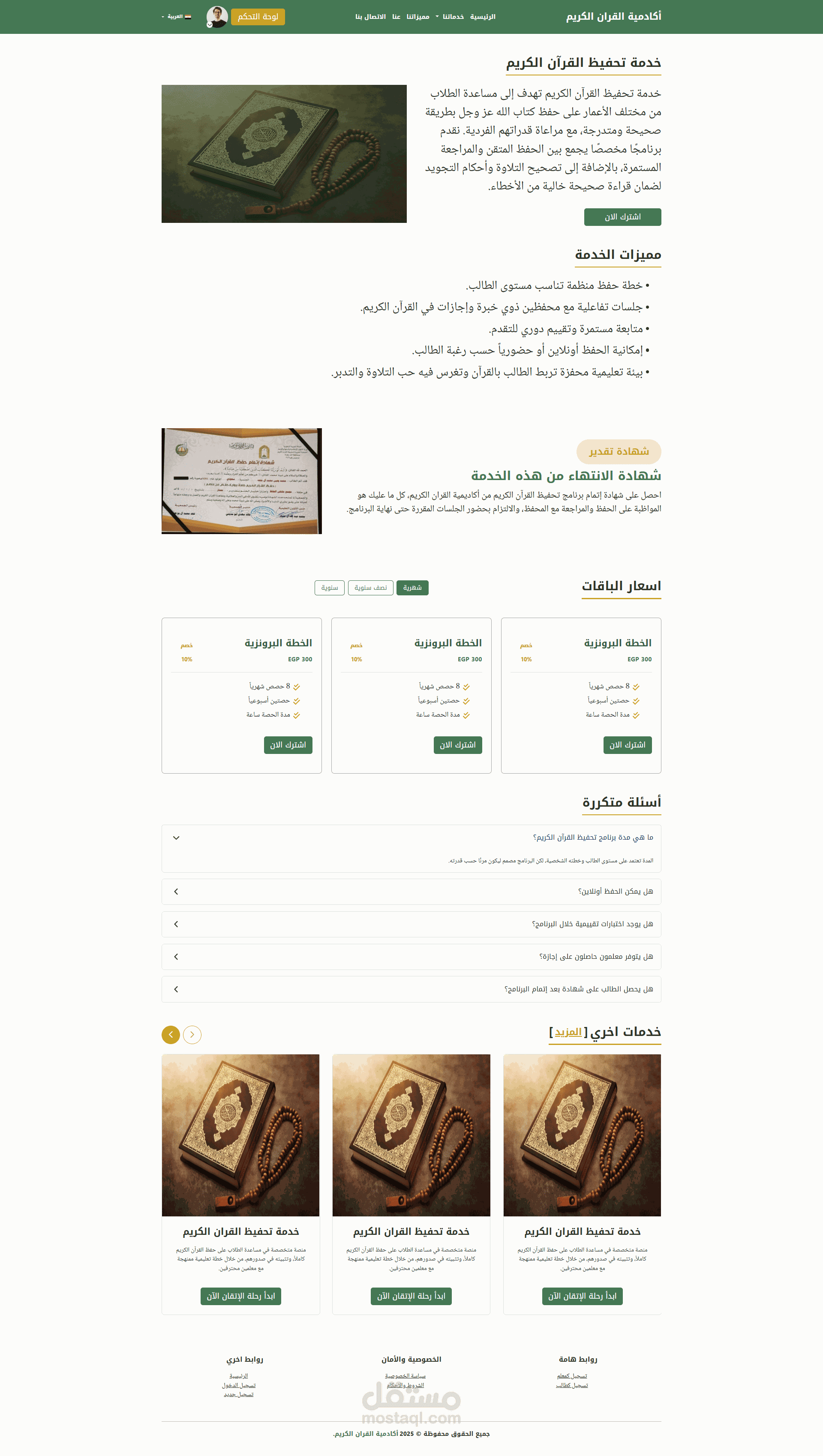 منصة أكاديمية متخصصة في حفظ القرآن الكريم عبر الإنترنت، توفر بيئة تفاعلية تجمع الطلاب والمعلمين معًا من خلال جلسات تعليمية، مع لوحات إدارية مخصصة للطلاب والمعلمين والإداريين لضمان تجربة منظمة وفعالة.