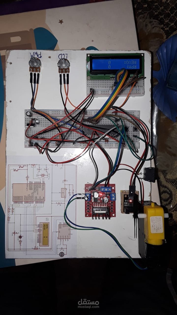 هذا المشروع يقدّم نظام متكامل لقياس ومراقبة سرعة دوران محرك تيار مستمر (DC) بدقة عالية باستخدام المتحكم الدقيق PIC16F877A. يتم عرض عدد اللفات في الدقيقة (RPM) على شاشة LCD 16x2، وكذلك إرساله عبر بروتوكول UART إلى تطبيق أندرويد مبني على MIT App Inventor.