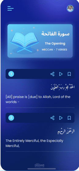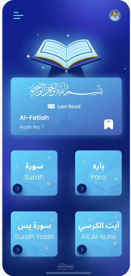 "تم تطوير تطبيق جوال متعدد المنصات (Quran Kareem App) باستخدام Flutter لتمكين المستخدمين من الوصول بسهولة إلى القرآن الكريم. يتضمن التطبيق ميزات مثل عرض نص القرآن كاملًا مع السور والآيات، خاصية البحث، إضافة المفضلة، ووضع الليل لتحسين القراءة. كما تم دمج خاصية الاستماع للتلاوة الصوتية مع إمكانية اختيار أكثر من قارئ، بالإضافة إلى دعم العمل دون اتصال بالإنترنت من خلال التخزين المحلي. تم تطبيق مبادئ تصميم UI/UX نظيفة لضمان تجربة سلسة وسهلة الاستخدام. كما تم استخدام إدارة الحالة (Provider / Bloc) ودمج خدمات Firebase (تسجيل الدخول، Firestore) لإدارة ملفات المستخدم، تتبع التقدم، والمزامنة السحابية."