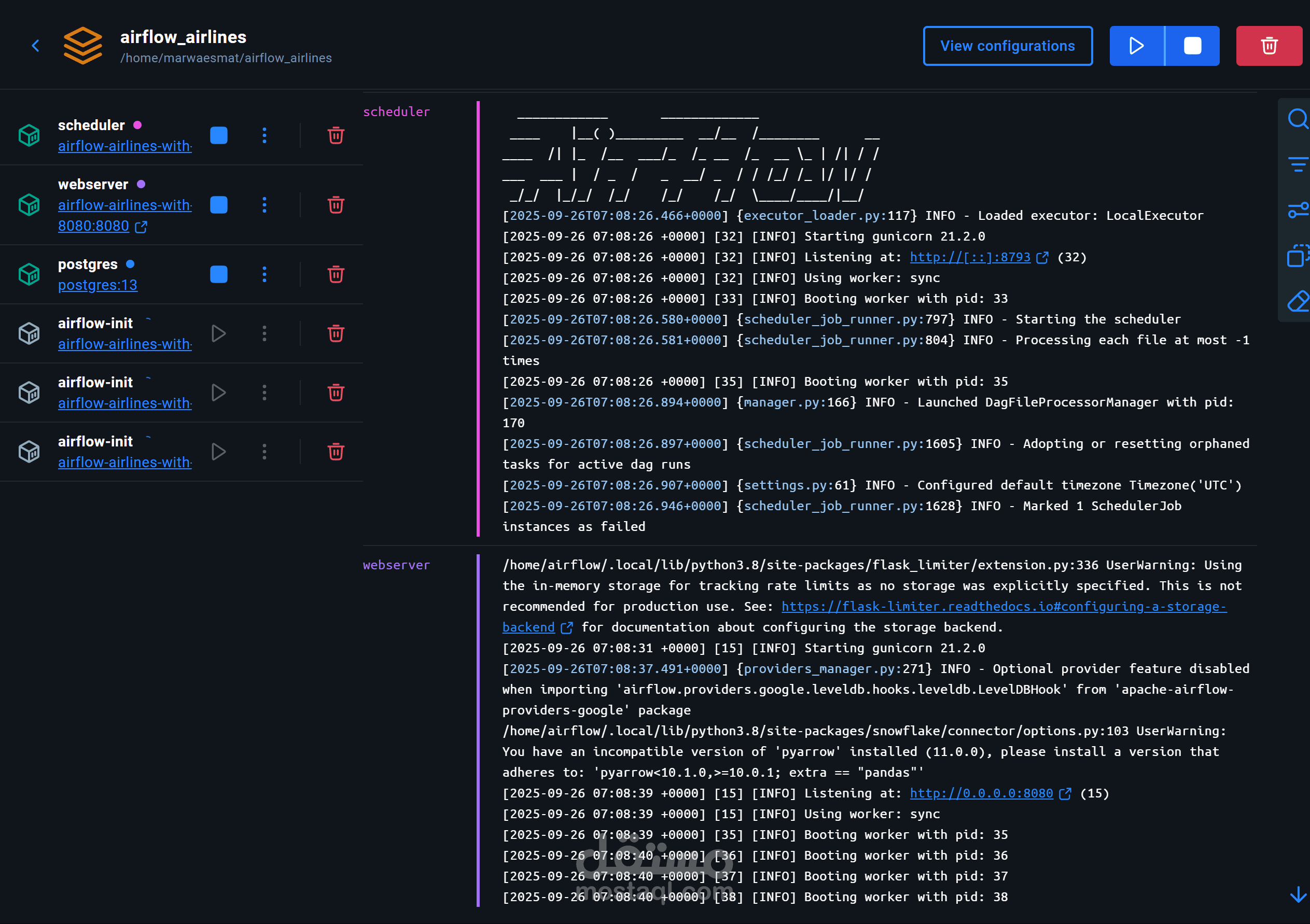 استخدمت Apache Airflow لجدولة وتشغيل المهام بشكل آلي مع مراقبة نجاحها.