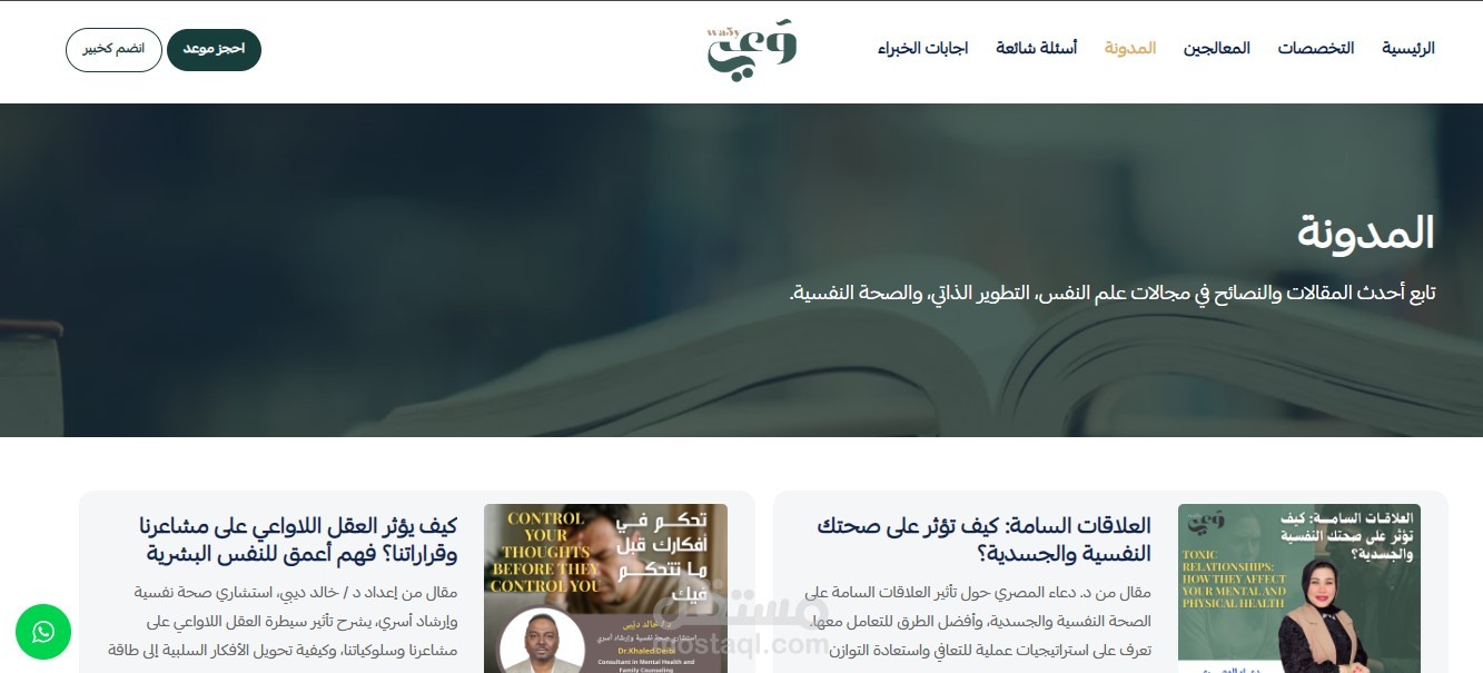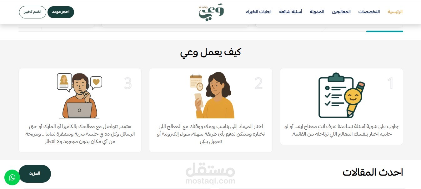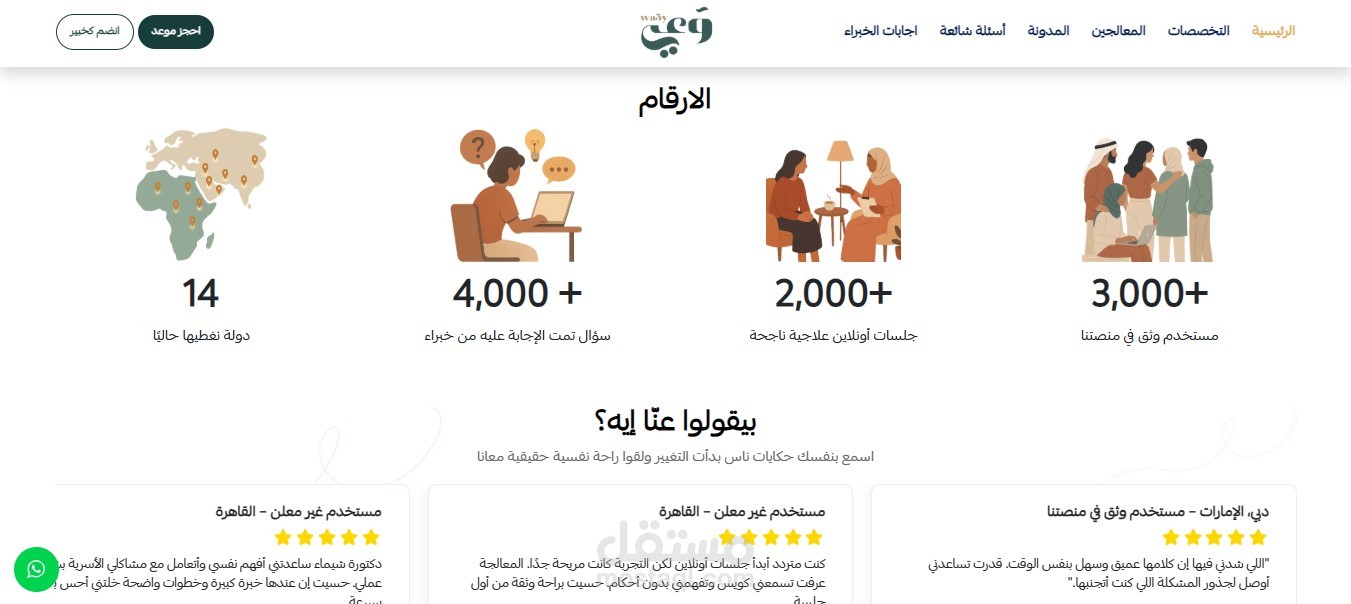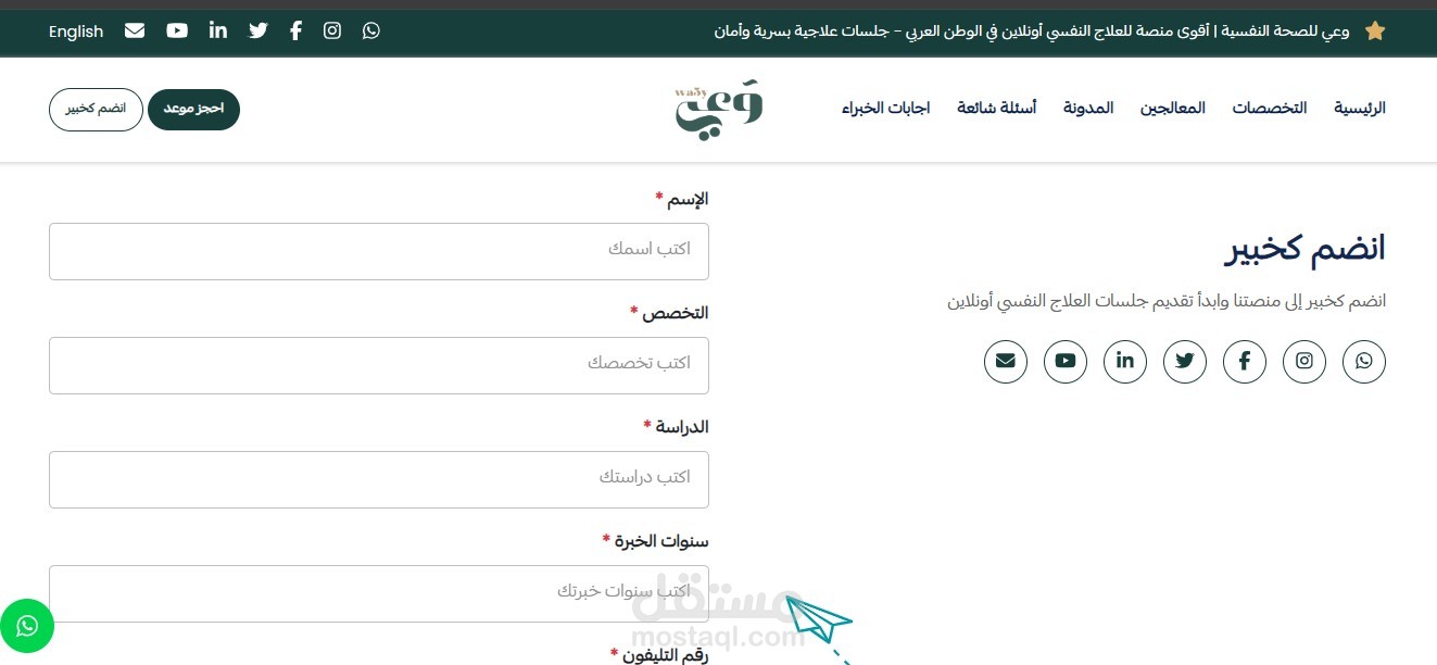 - توفر المنصة صفحة مخصصة للمعالجين النفسيين للتسجيل والانضمام كخبراء.