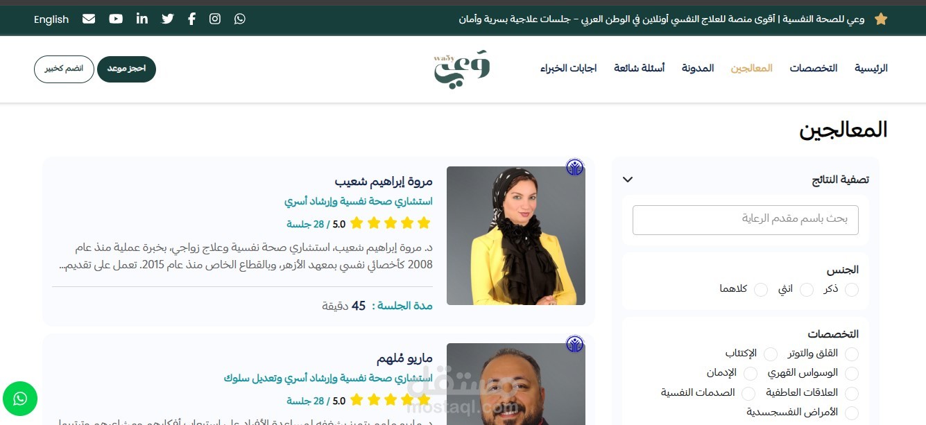 - عرض قائمة شاملة من المعالجين النفسيين المتخصصين في مختلف المجالات.