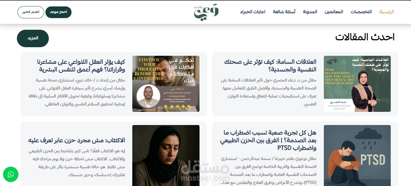 - تحتوي المنصة على مقالات ومواضيع علمية لدعم الوعي النفسي للمستخدمين.