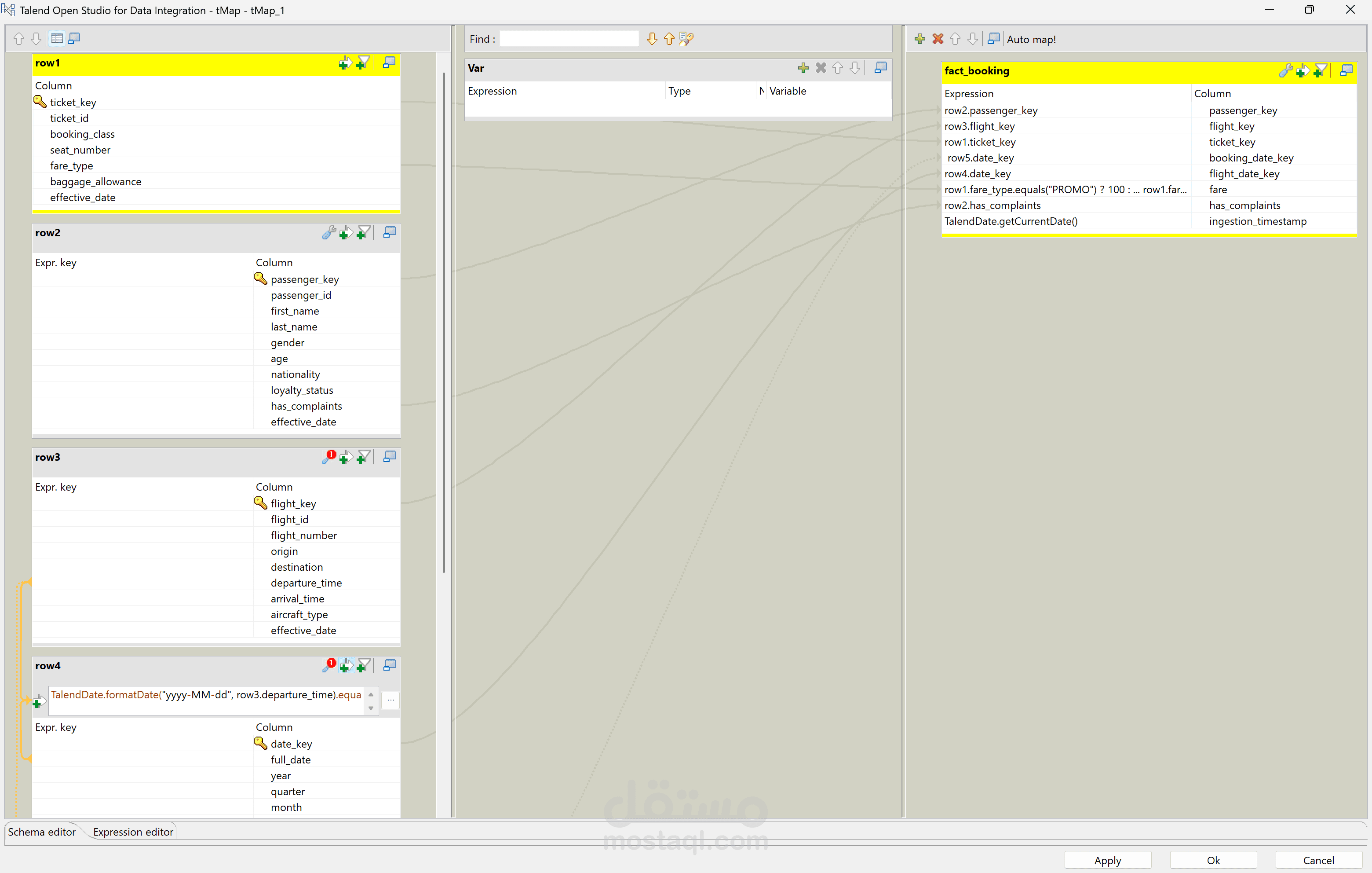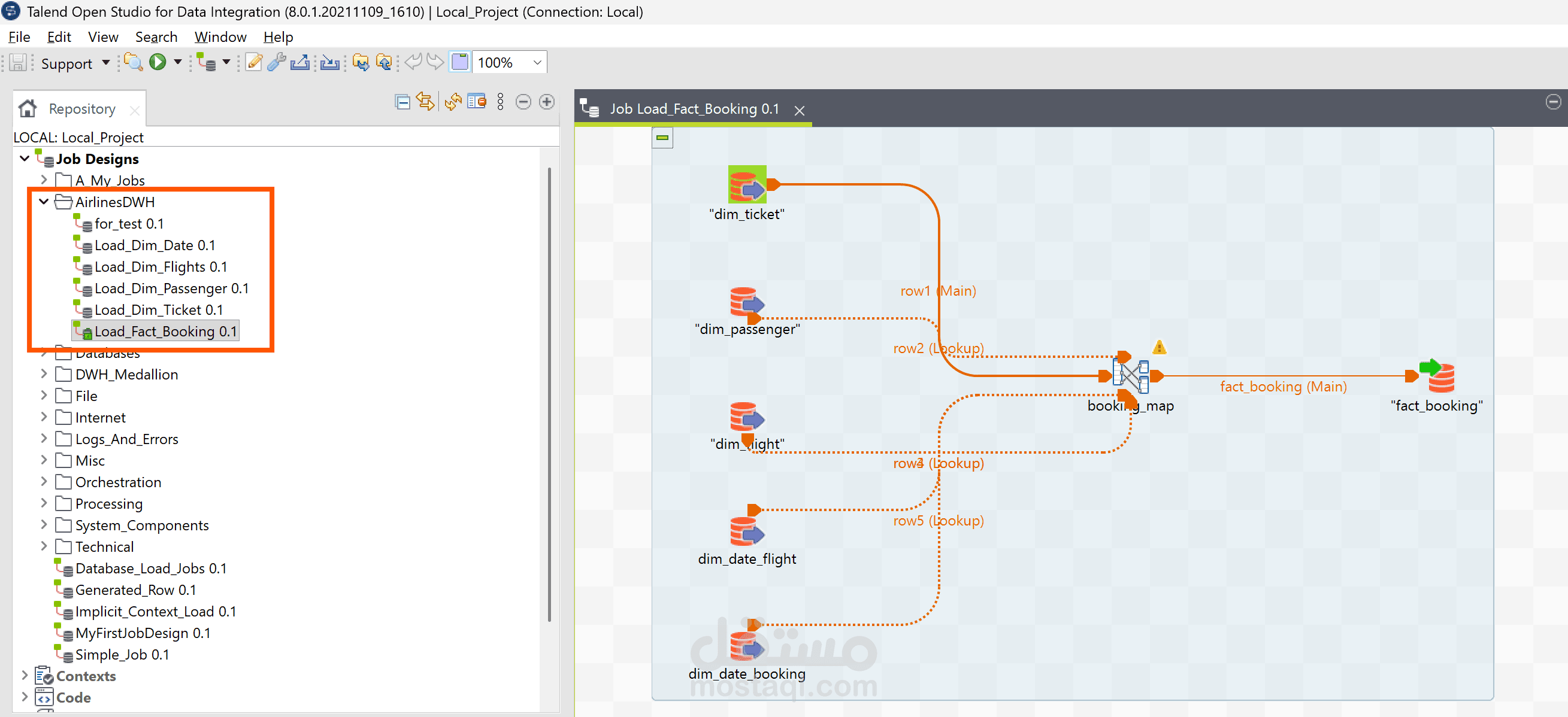 أنجزت مشروع ETL باستخدام Talend Open Studio لمعالجة بيانات الحجز الخاصة بشركة طيران.