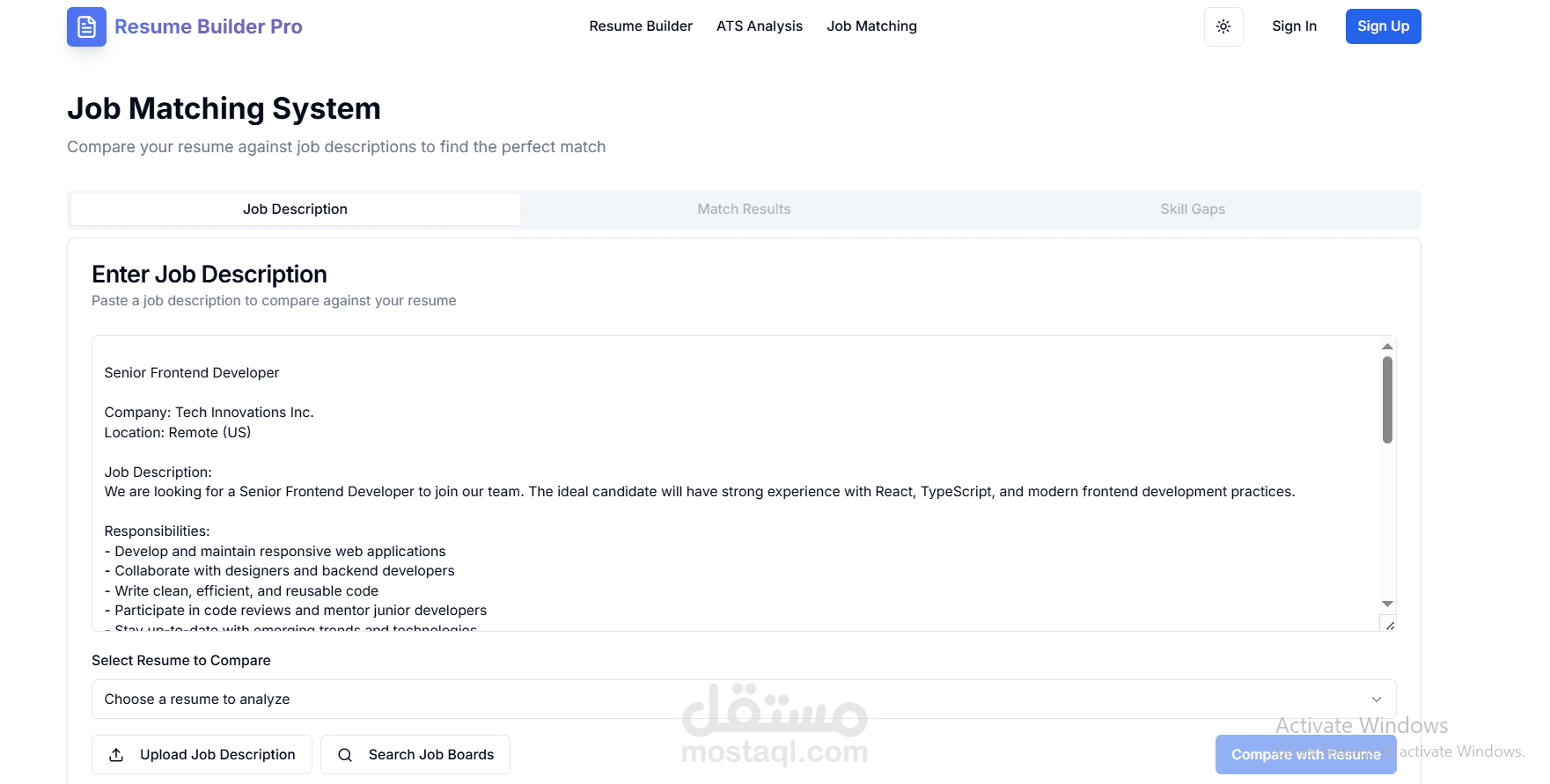 يهدف هذا المشروع إلى مساعدة الباحثين عن عمل في إنشاء سير ذاتية احترافية والبحث عن فرص عمل مناسبة بشكل أكثر كفاءة وفعالية. يجمع النظام بين ميزتين رئيسيتين: