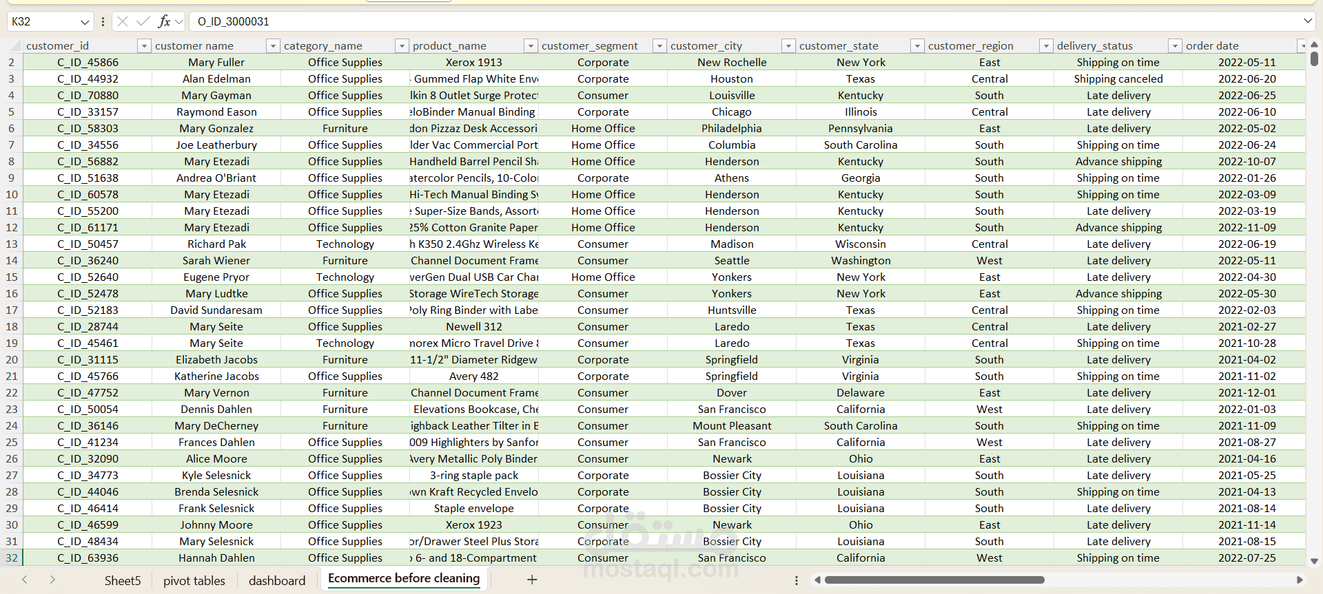 بتوضح كمان توزيع الأداء حسب الفئات، القطاعات، المناطق، المدن والعملاء، مع تحليل حسب تاريخ الطلب ونوع الشحن.