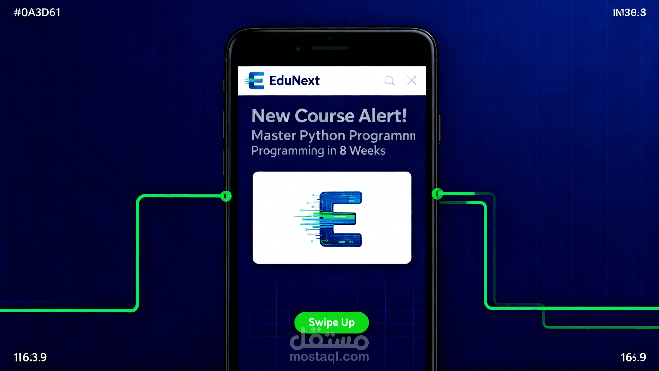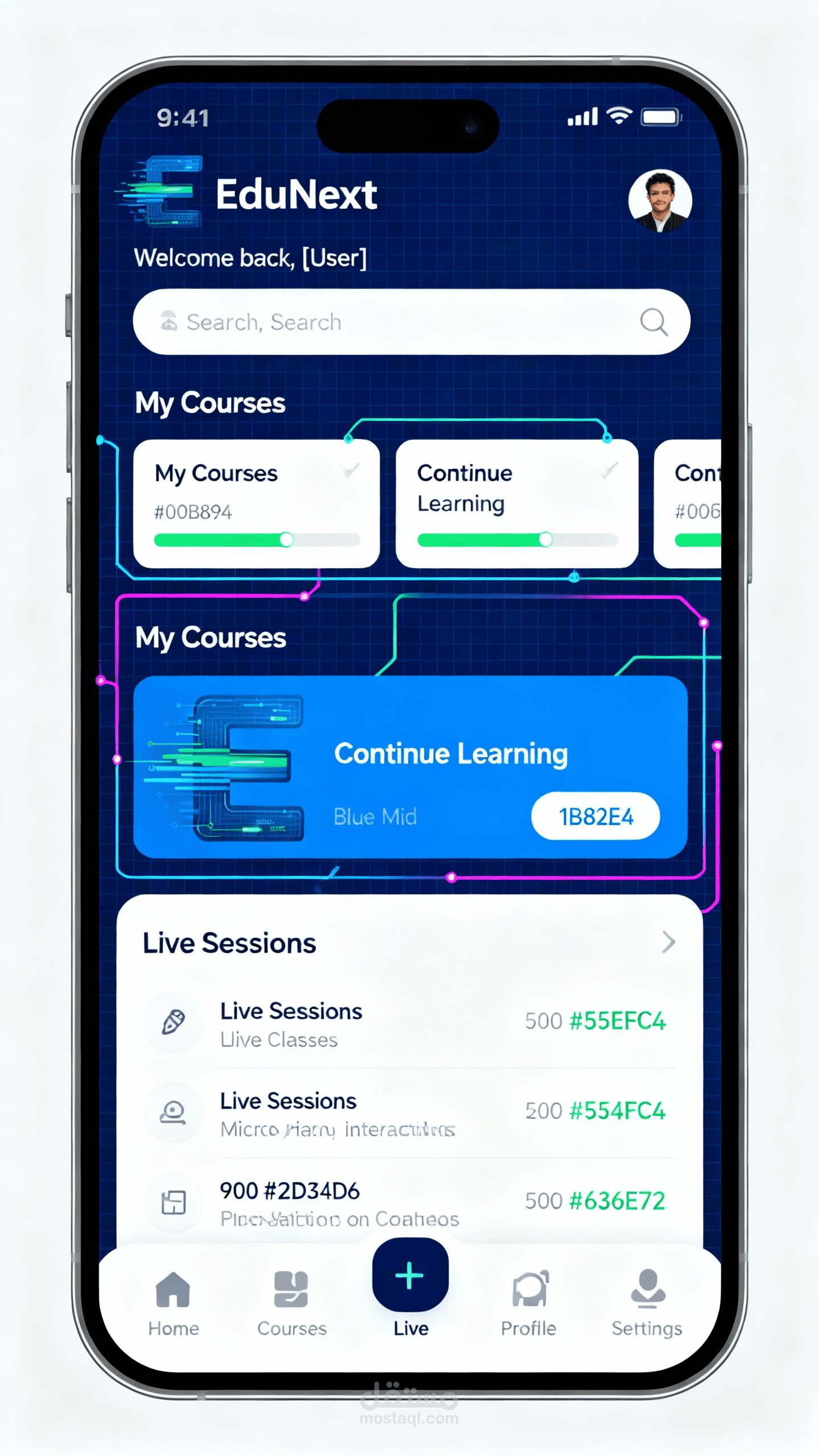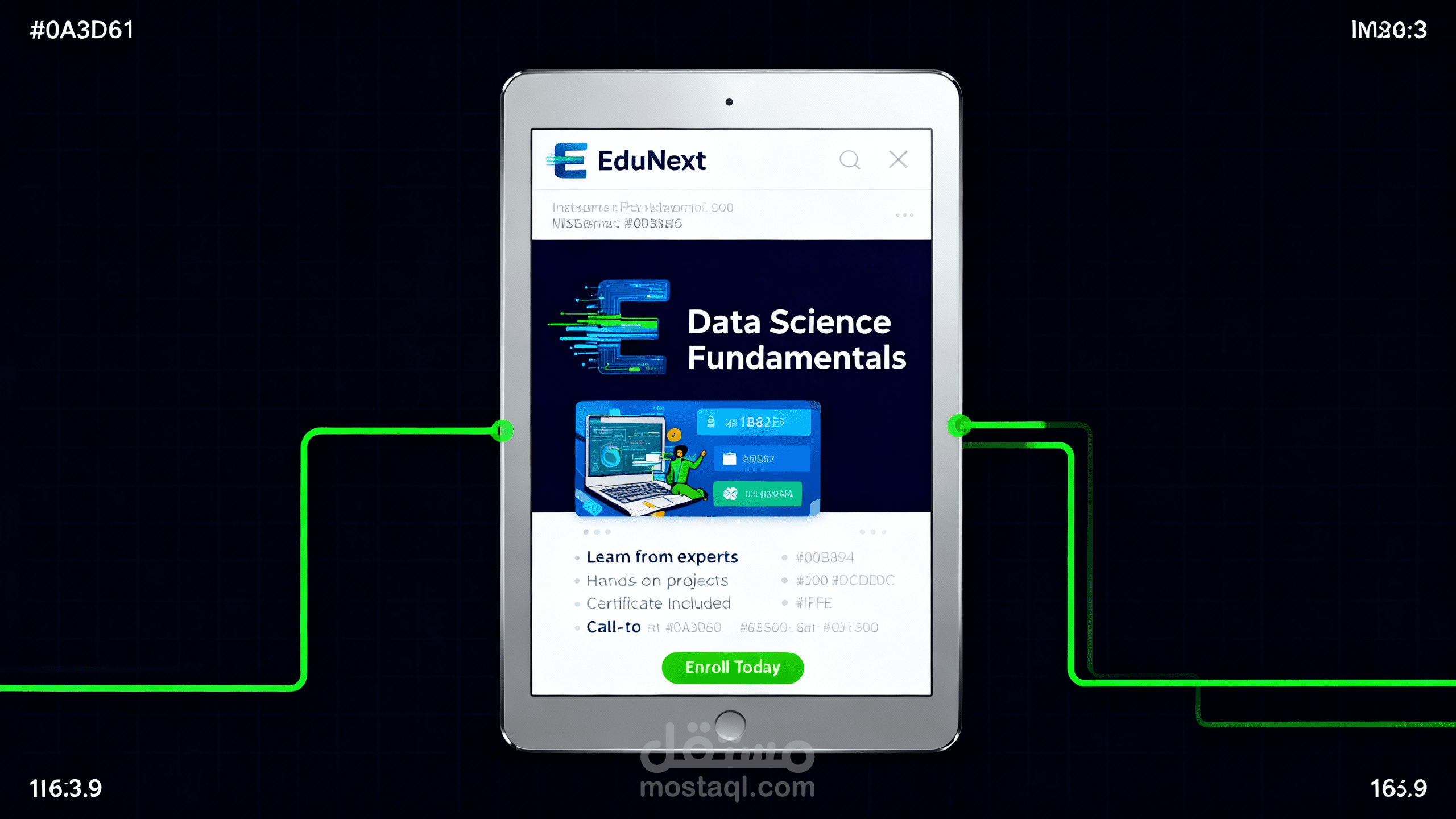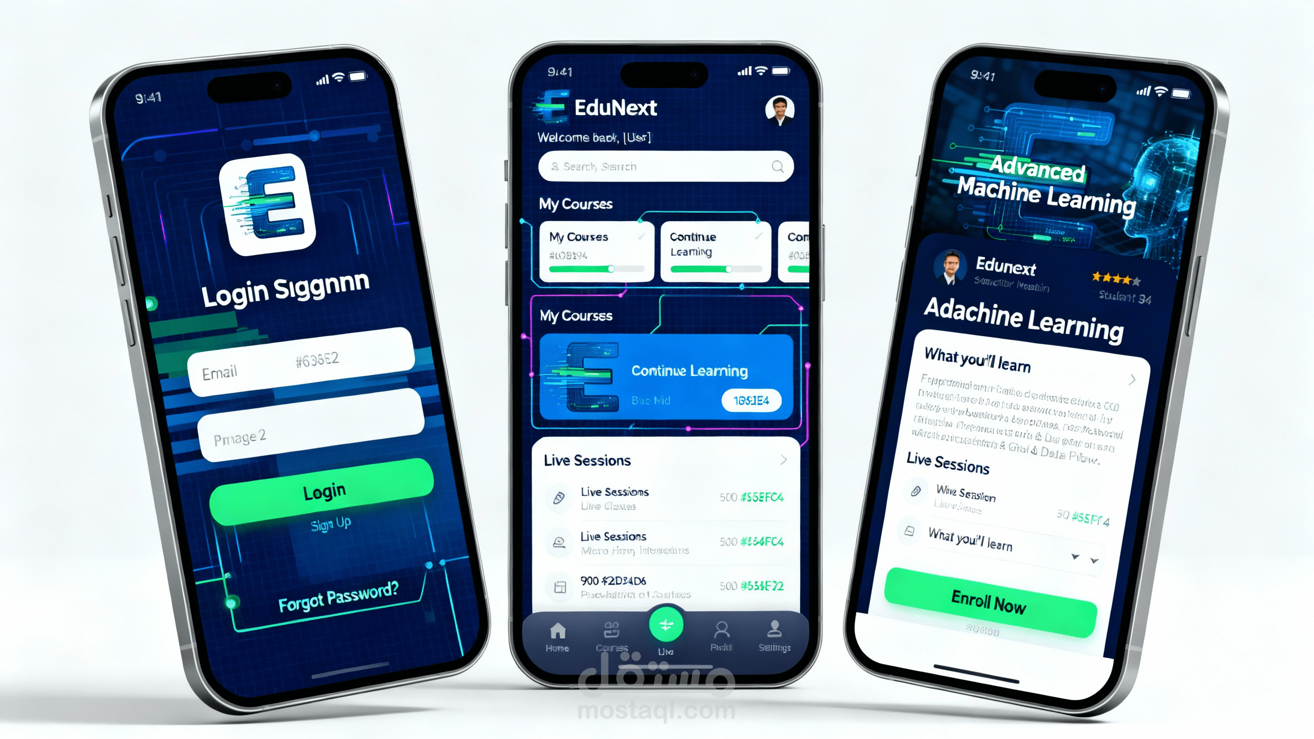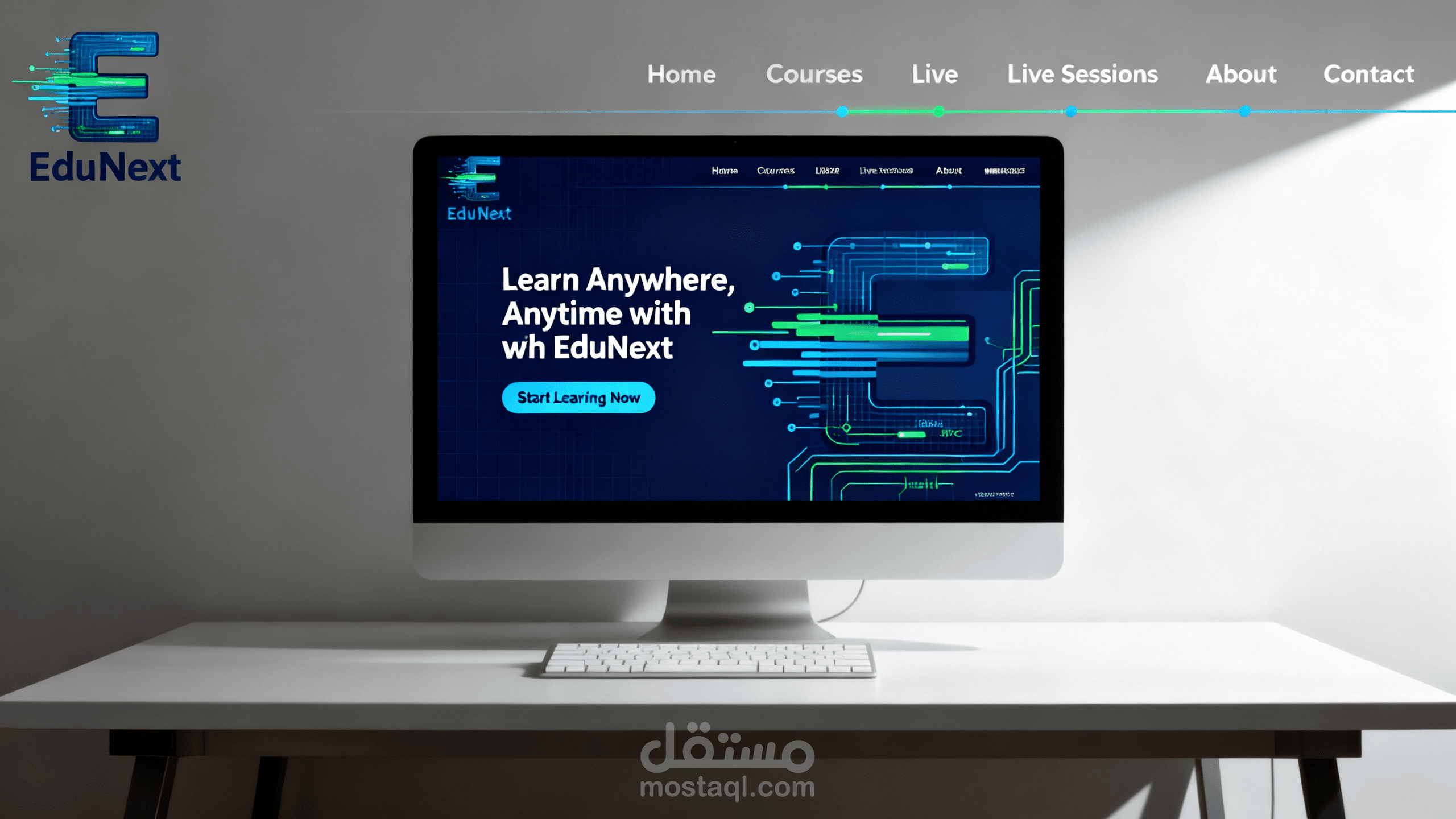 قمت بتنفيذ مشروع متكامل لشركة تعليم إلكتروني ناشئة باسم EduNext، يهدف إلى تقديم تجربة تعليمية حديثة تعتمد على التفاعل، الجلسات المباشرة، ونظام تتبع تقدّم الطلاب.