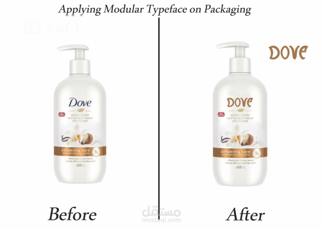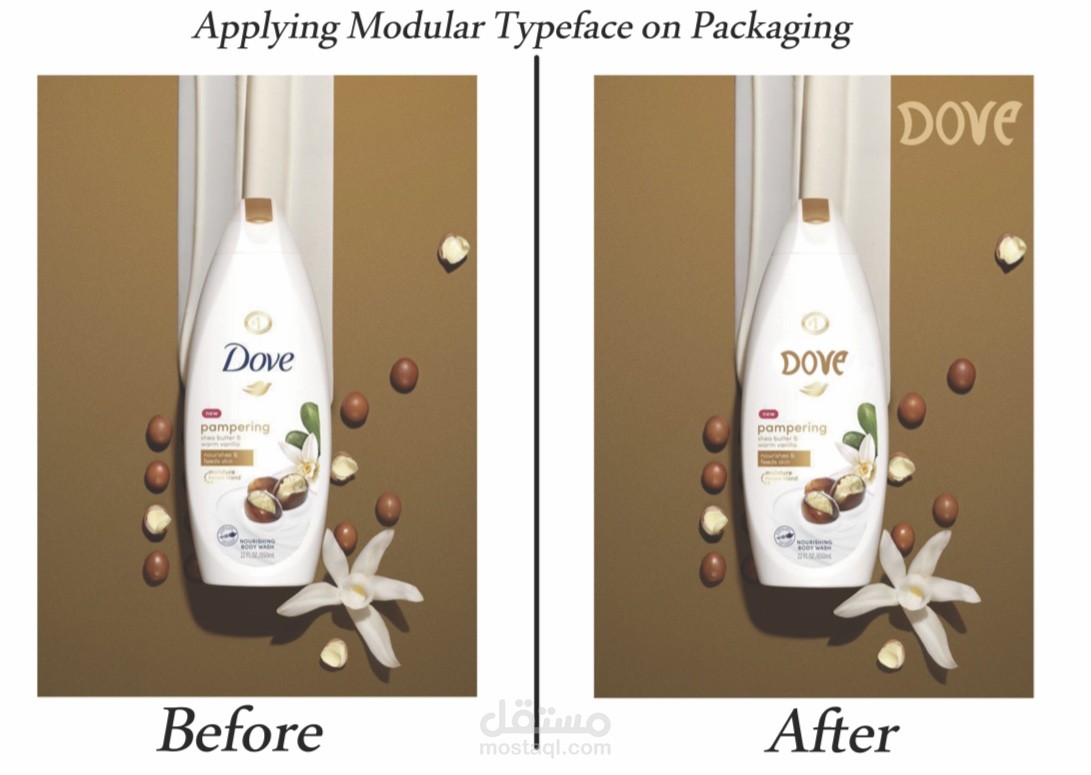 تم تعديل واجهة منتج dove مع تغيير الخطوط لتكون أكثر وضوحًا وجاذبية. التصميم الجديد متناسق مع ألوان المنتج وشكله، جاهز للاستخدام الرقمي والمطبوعات.